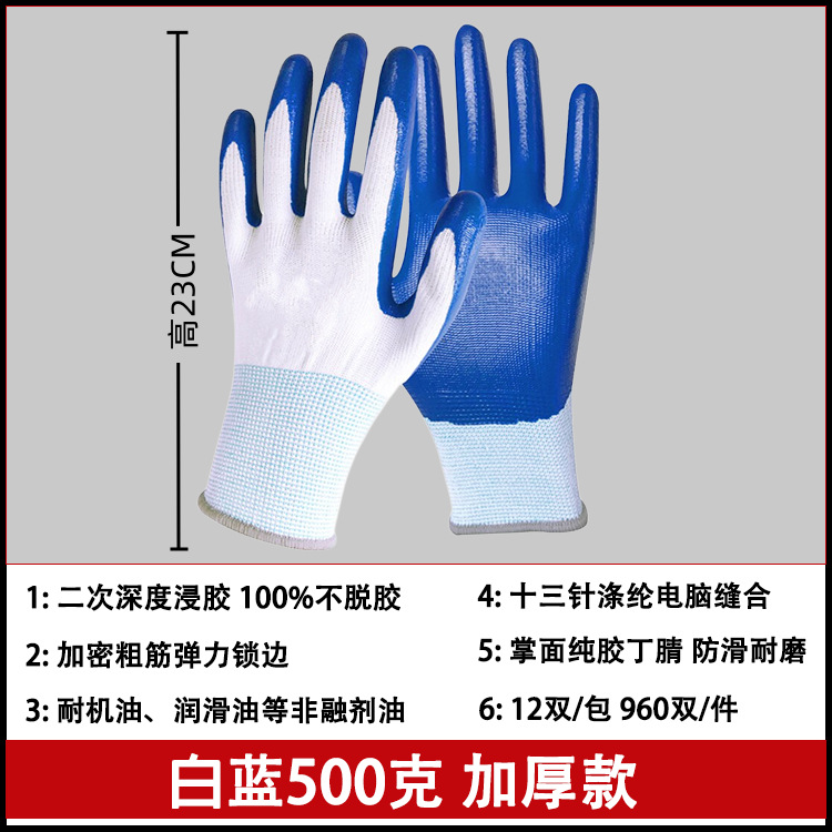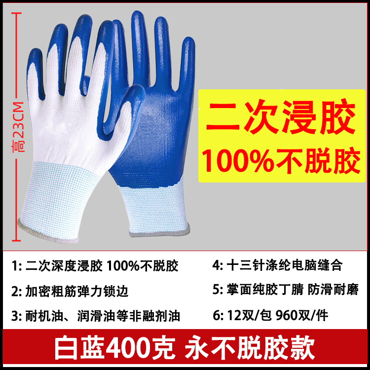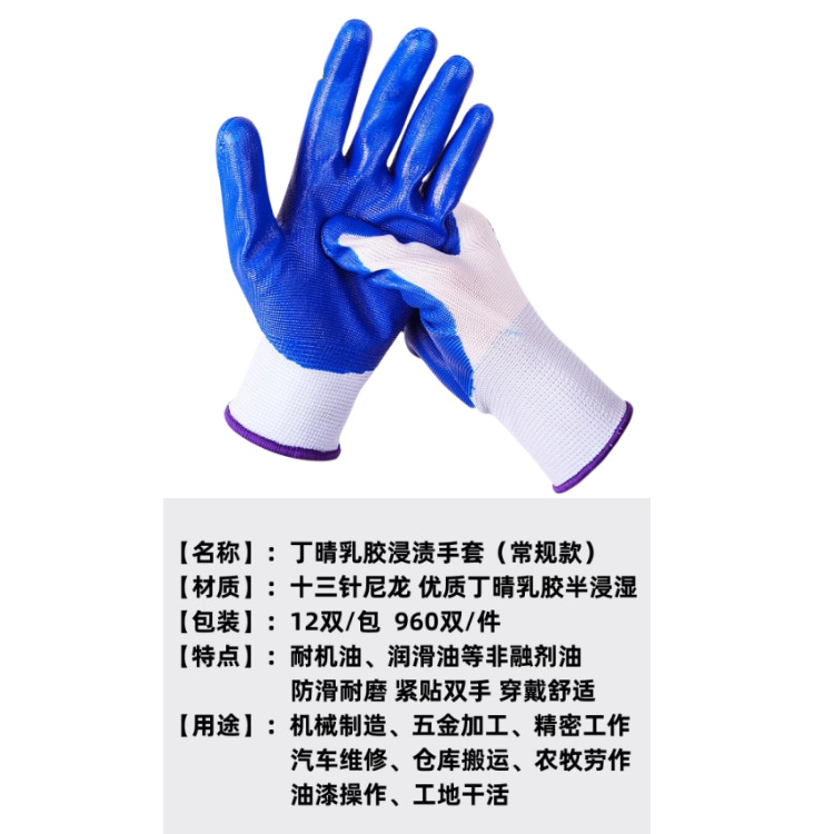劳保手套干活丁晴浸胶手套工地丁腈赶海作业手套广东发货