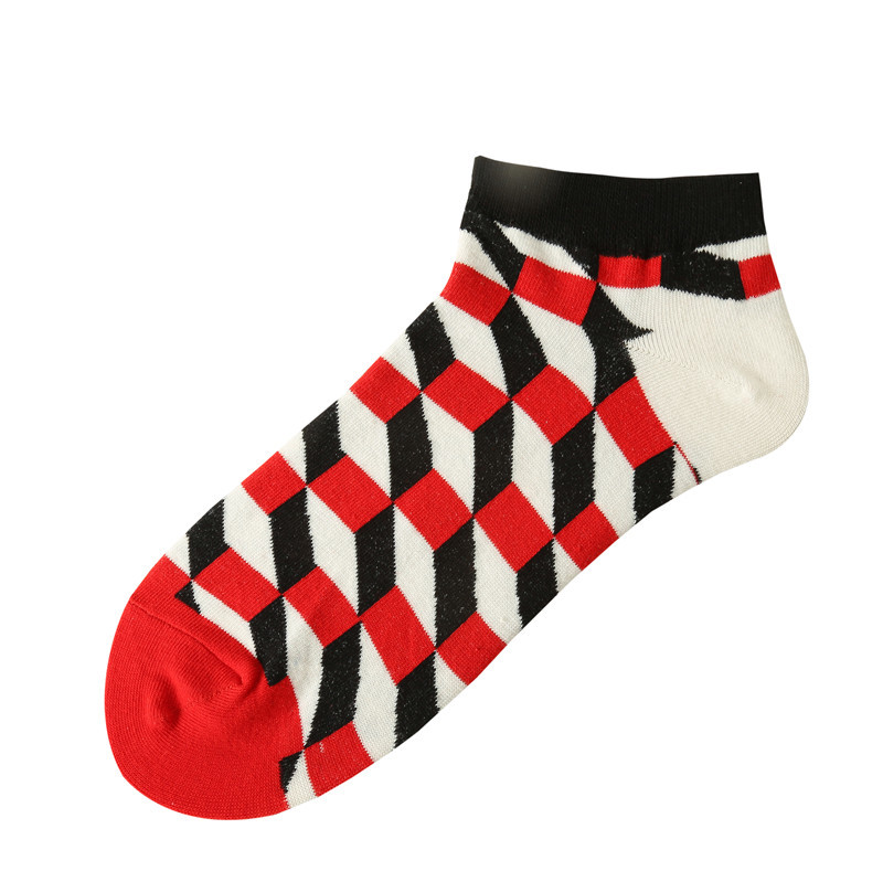 一件代发爆款春夏男女情侣几何彩色短袜棉男士船袜格子菱形格