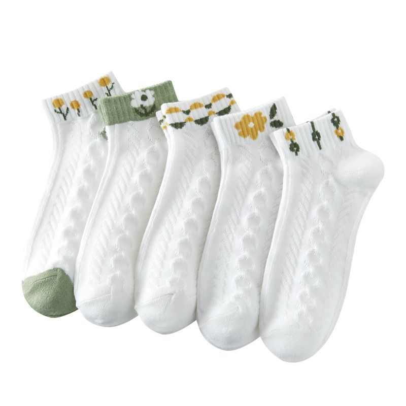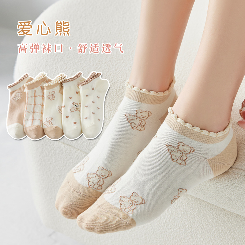 五双装春夏男女船袜网眼透气薄款精梳棉女袜休闲运动男士短款船袜