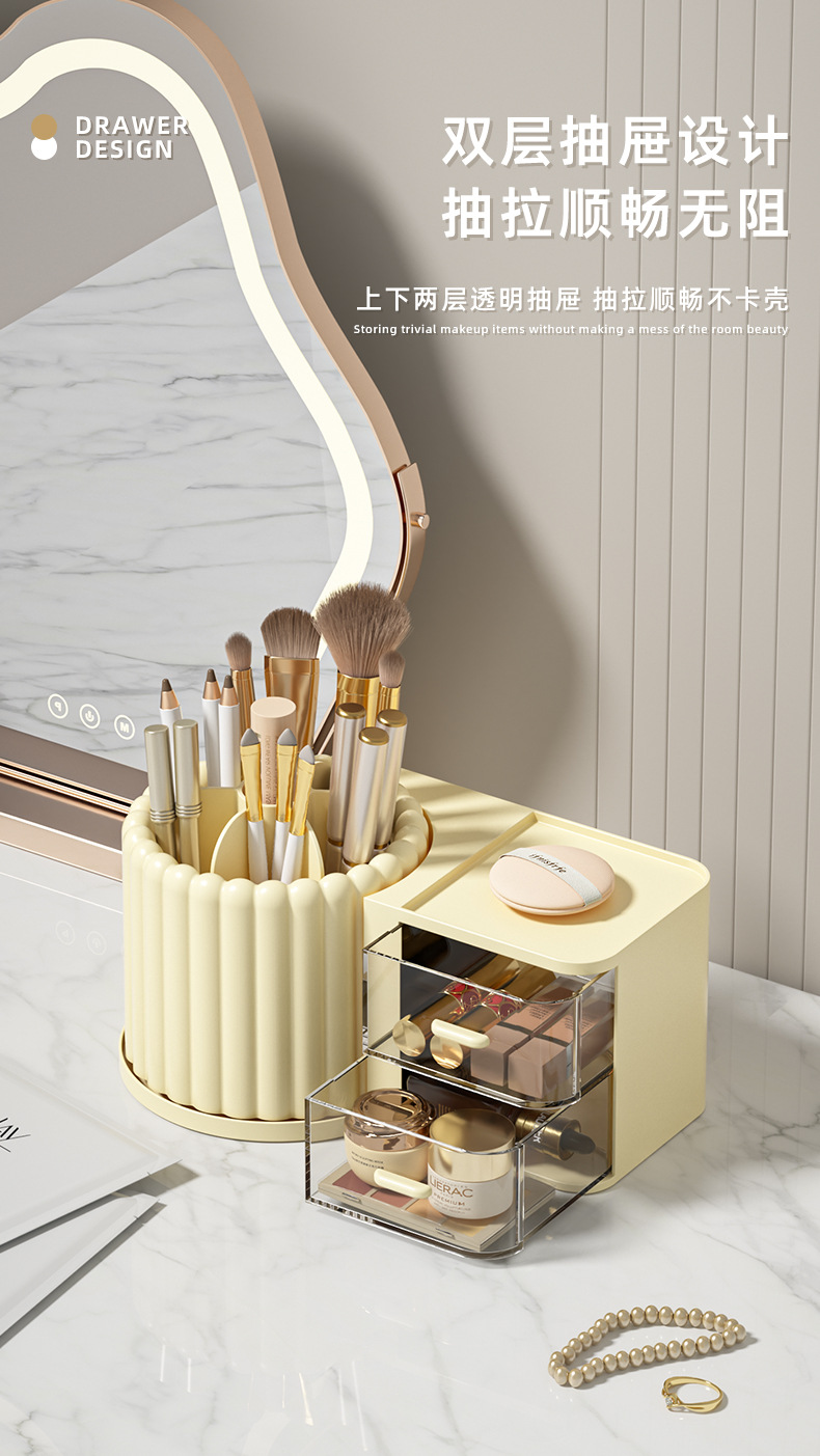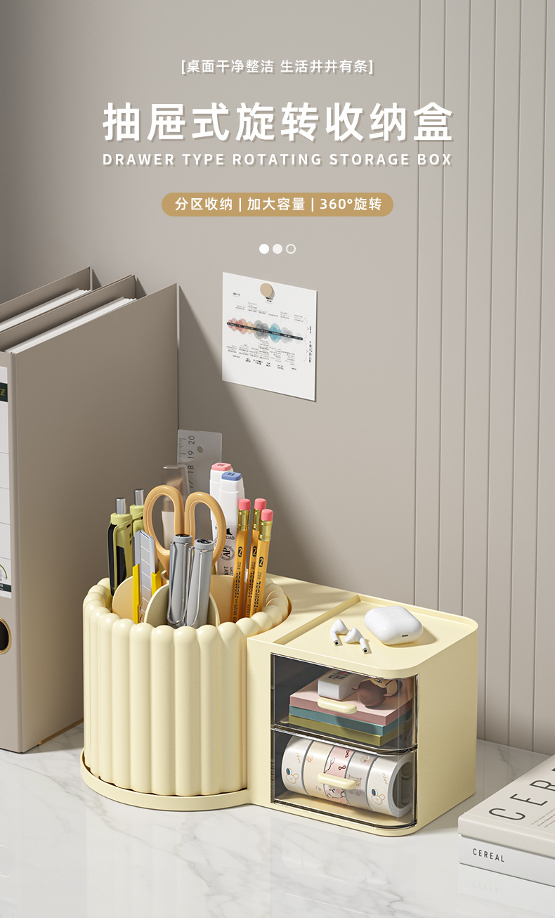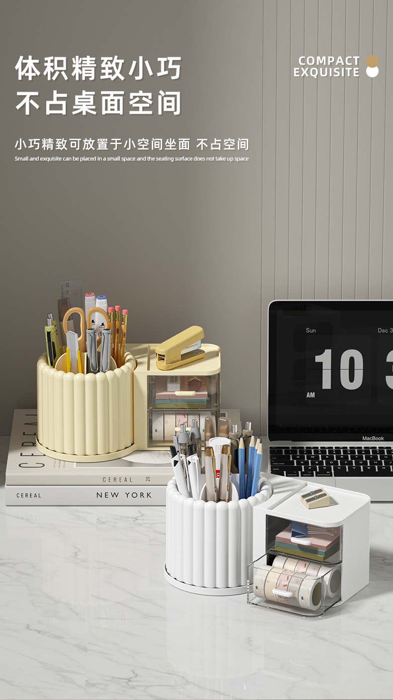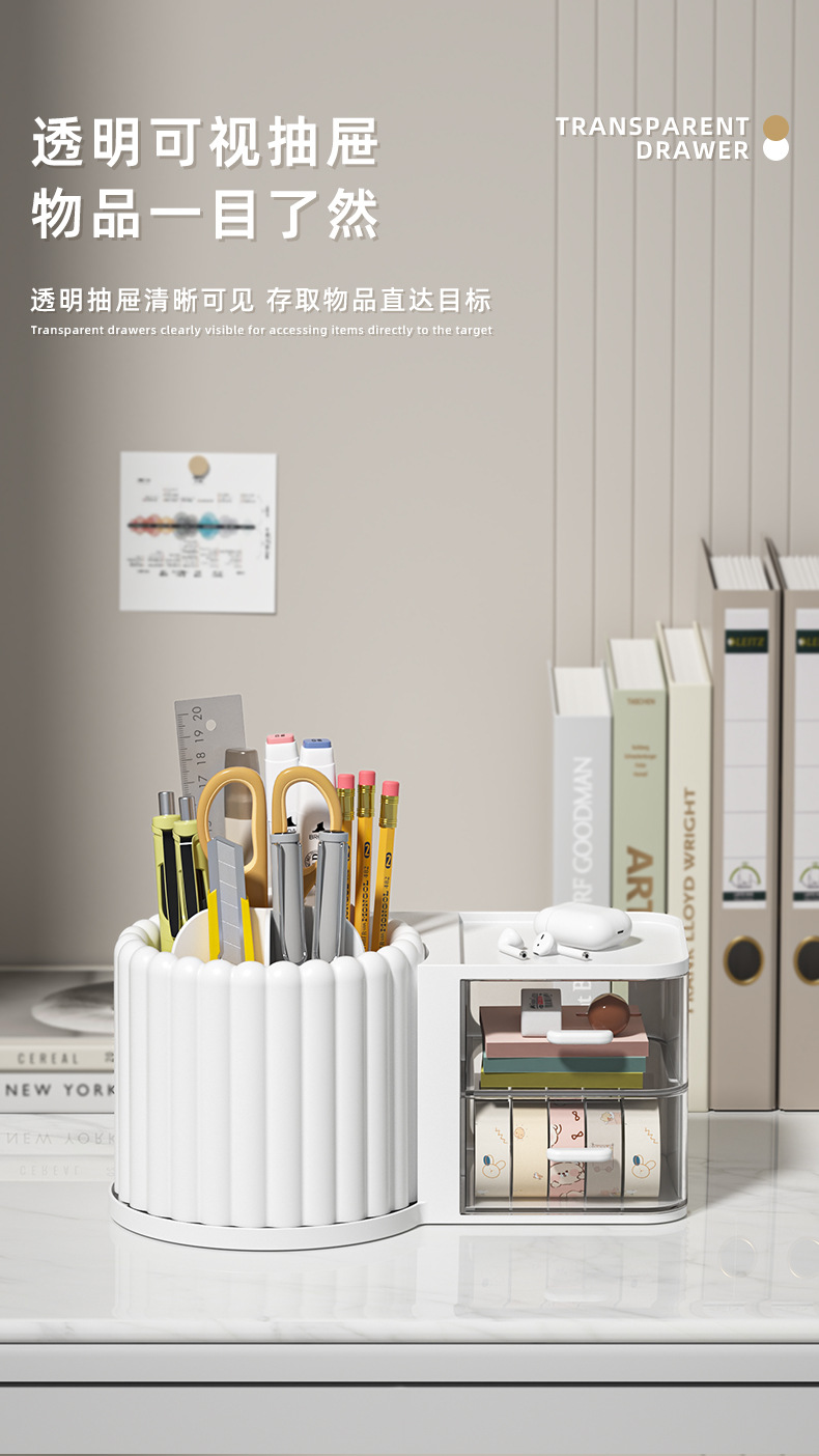 创意桌面旋转笔筒护肤化妆品收纳盒学生宿舍抽屉收纳箱笔筒置物架