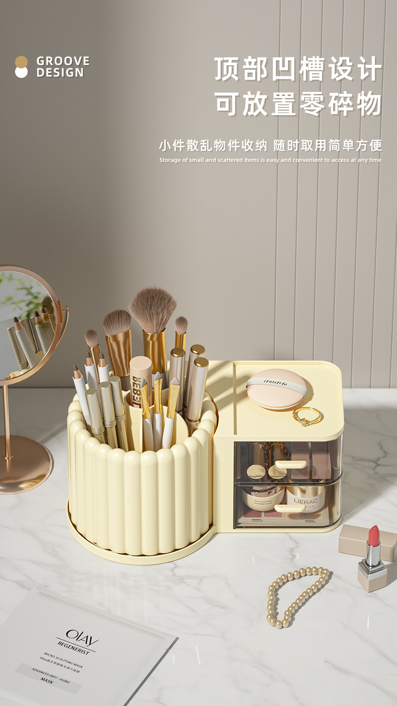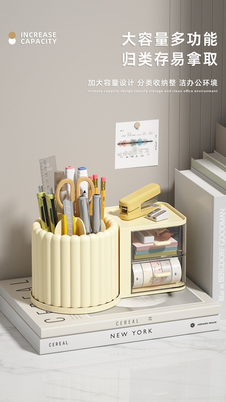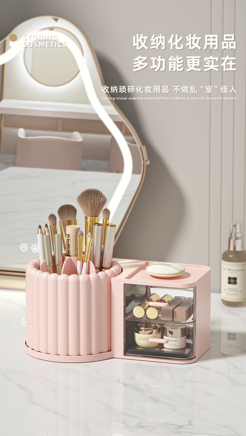 创意桌面旋转笔筒护肤化妆品收纳盒学生宿舍抽屉收纳箱笔筒置物架