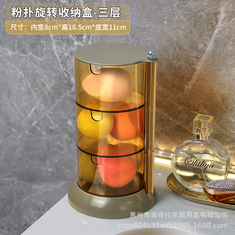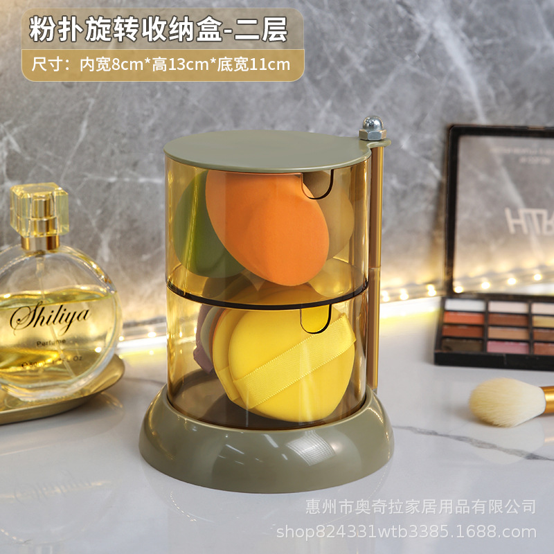 收纳盒粉扑透明旋转防尘多层圆形大号北欧化妆棉美妆蛋置物架子