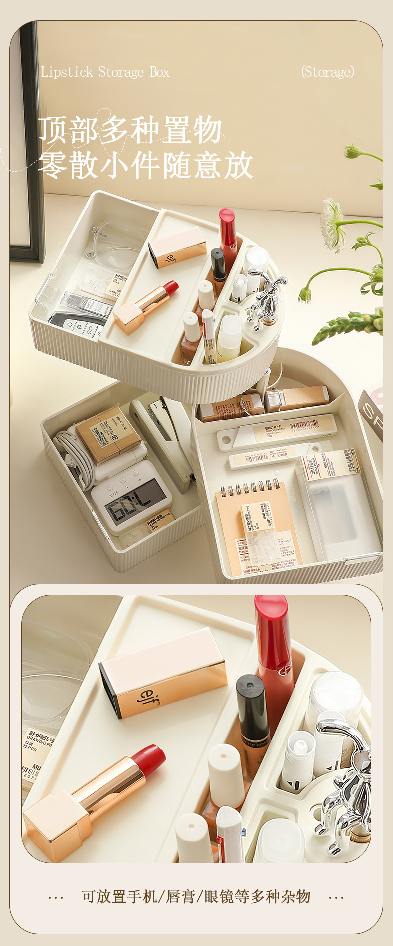 桌面旋转收纳盒化妆品护肤品首饰口红刷茶包文具多层整理置物架