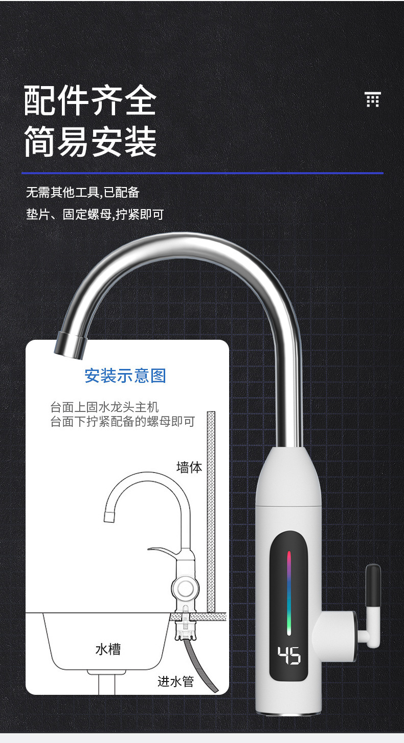 家用厨房速热水龙头即热式恒温数显冷热两用不锈钢电热水龙头批发