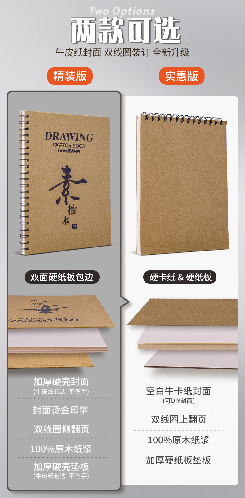厂家直销8K素描本批发 A4学生专用便携绘画图画本16K牛皮纸速写本