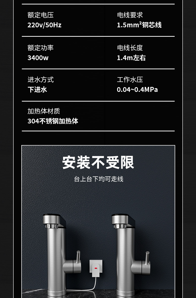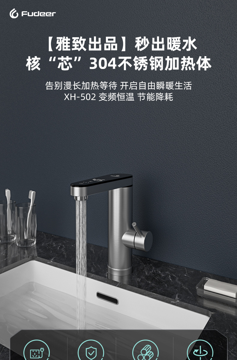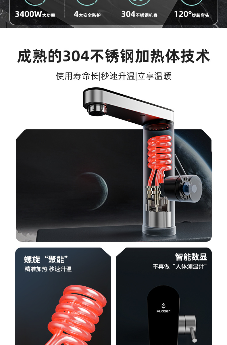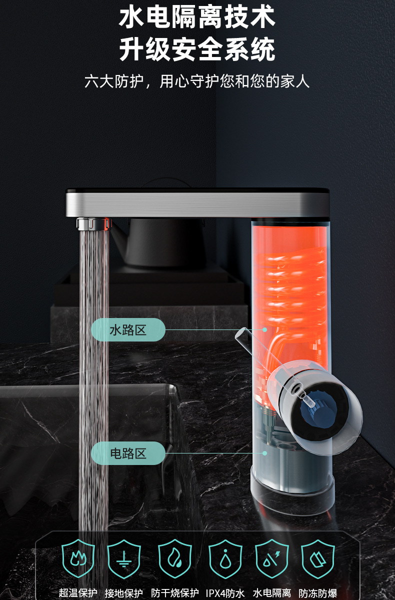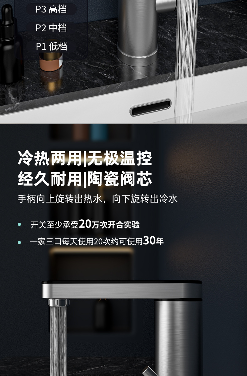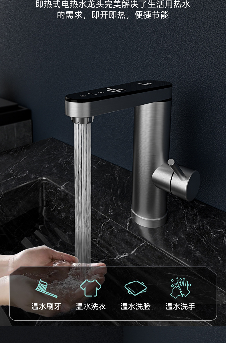 卫生间不锈钢即热式水龙头恒温智能数显电热水龙头冷热两用跨境