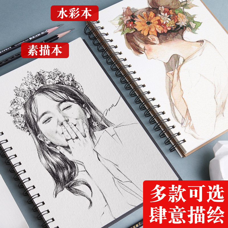马利黑骑士素描本8K线圈学生速写本绘画笔记本空白手绘画本彩画纸