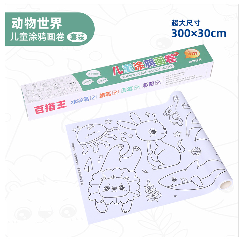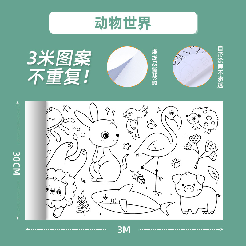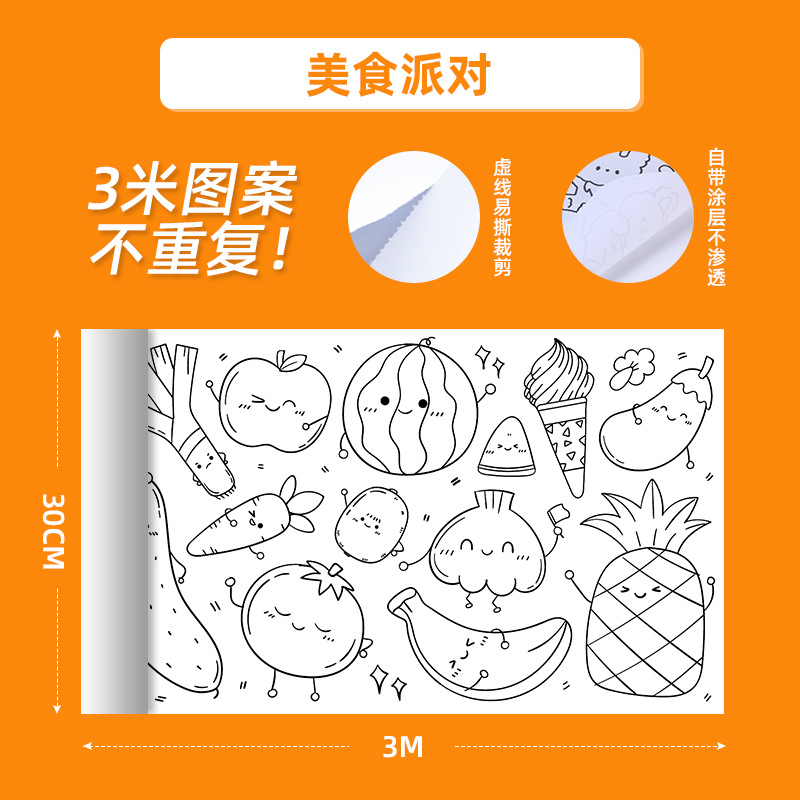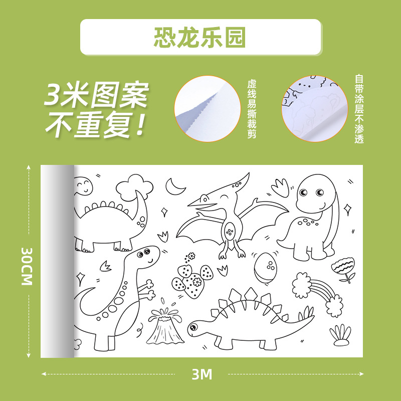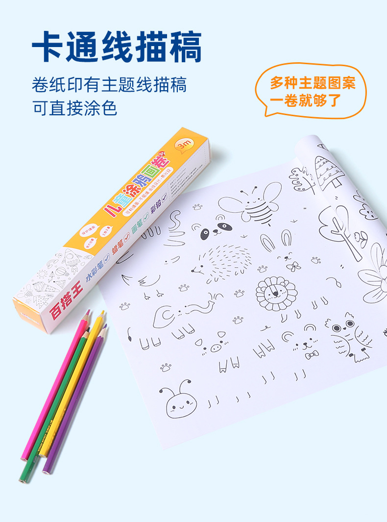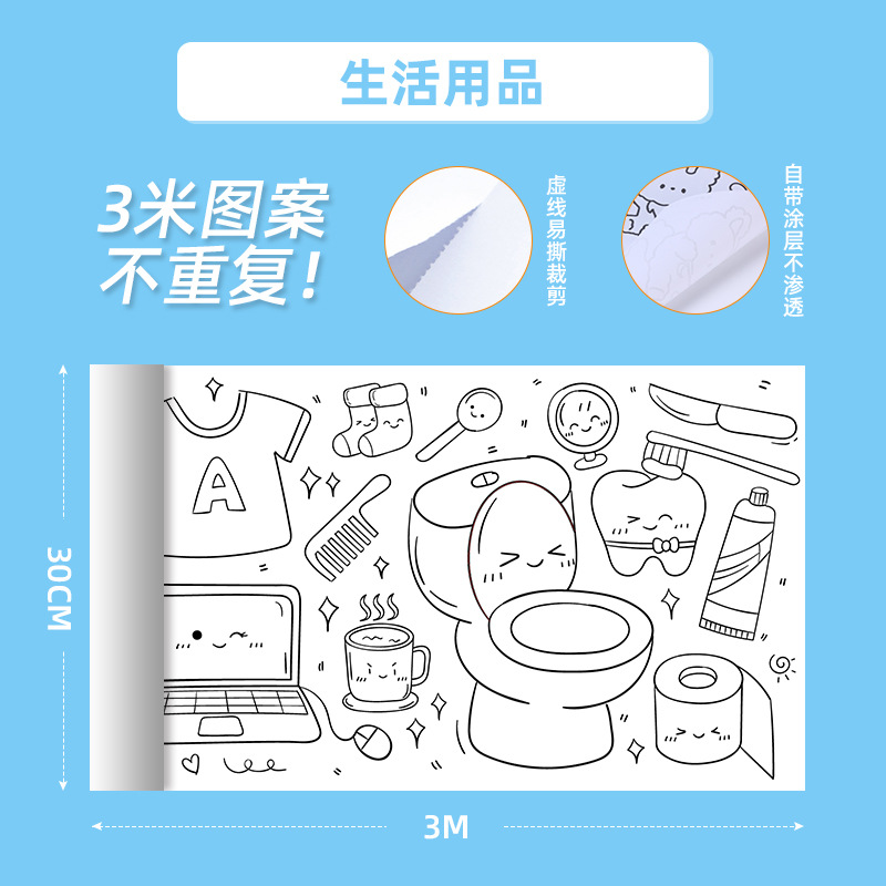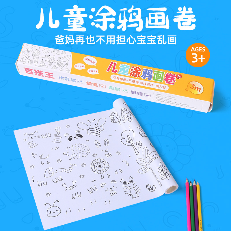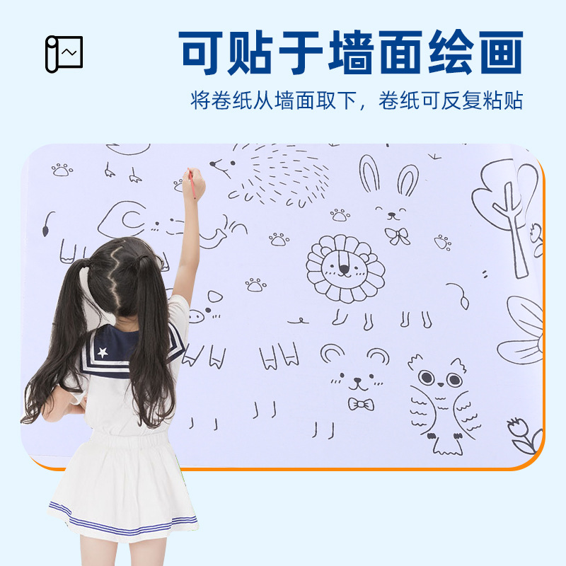 儿童涂鸦画卷3mm填色绘画纸长画卷幼儿宝宝画布不脏墙可贴墙画纸