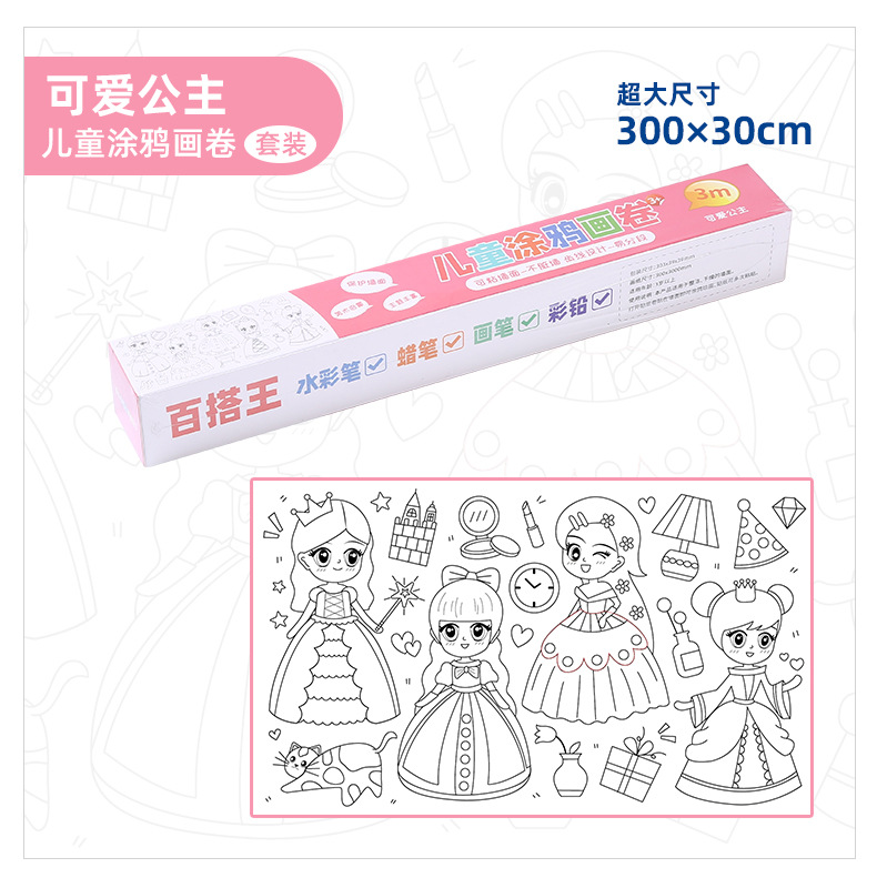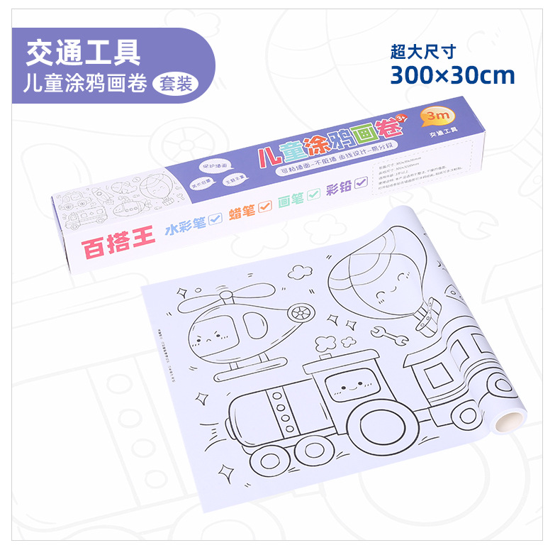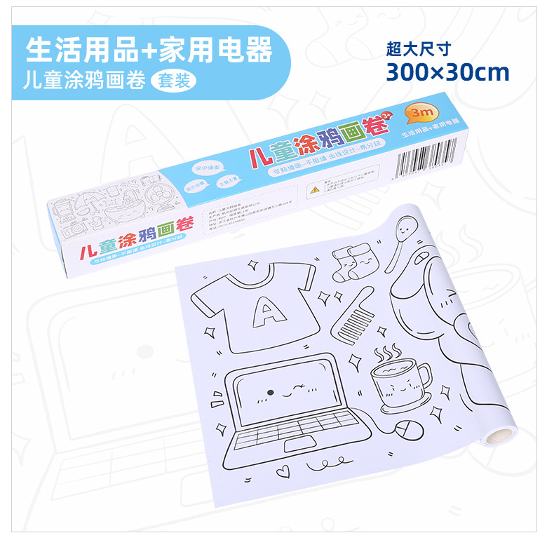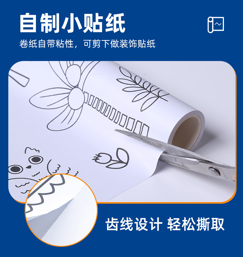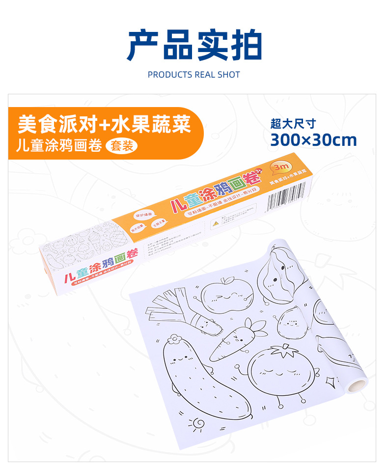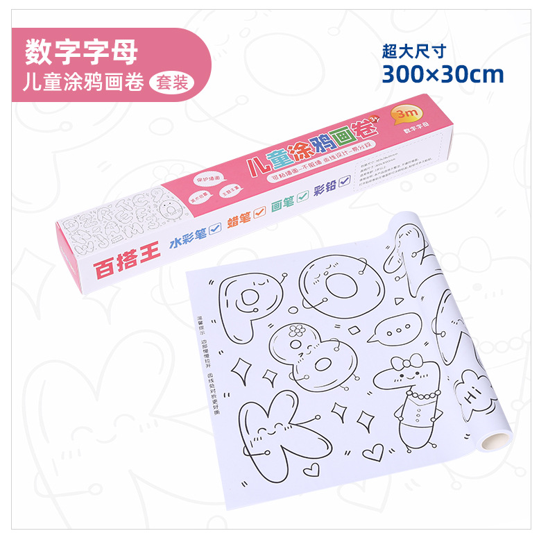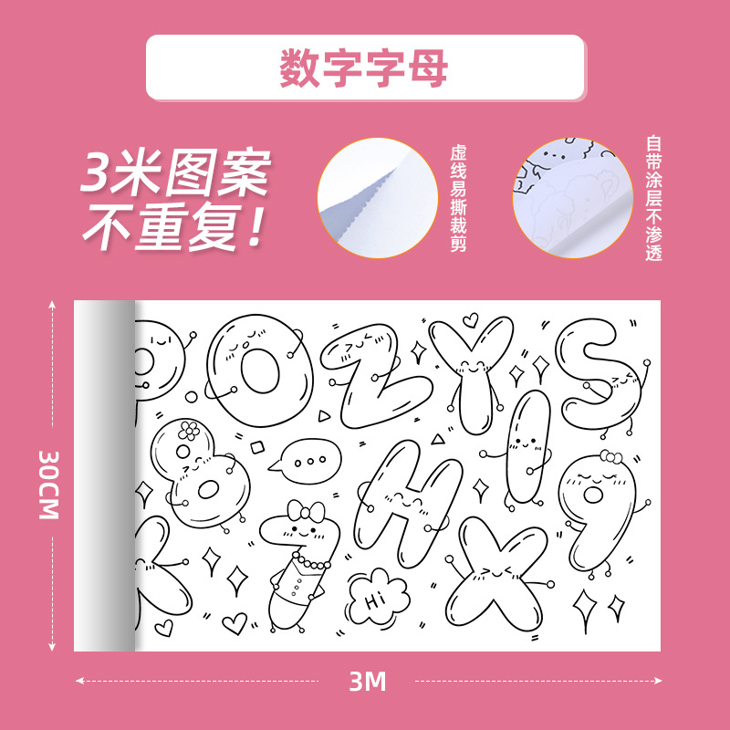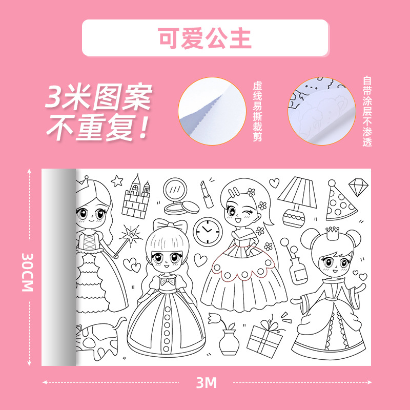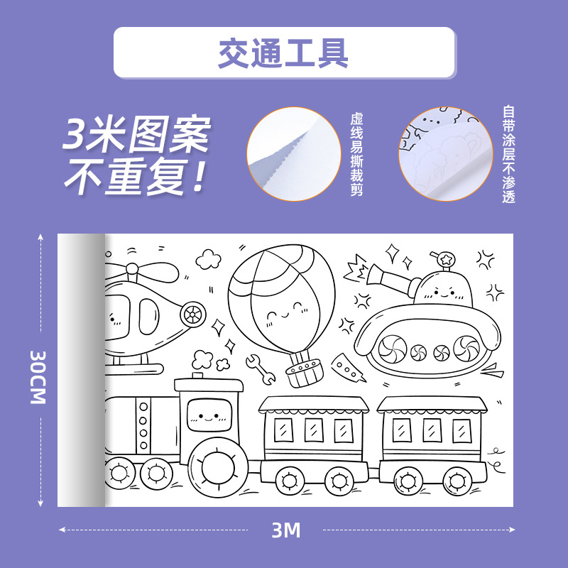 儿童涂鸦画卷3mm填色绘画纸长画卷幼儿宝宝画布不脏墙可贴墙画纸