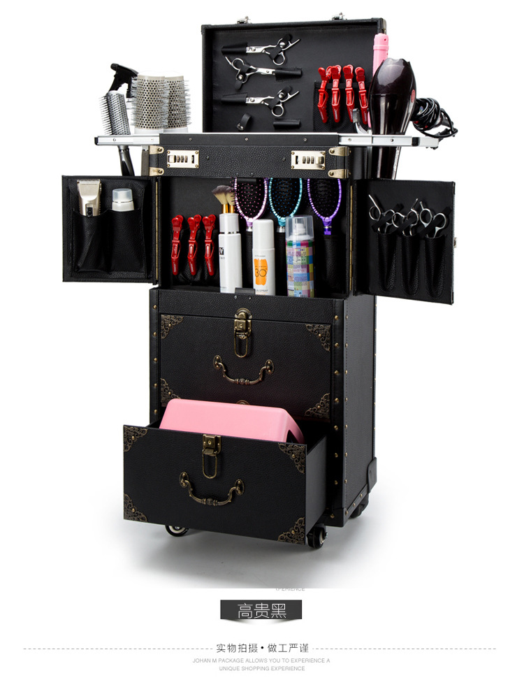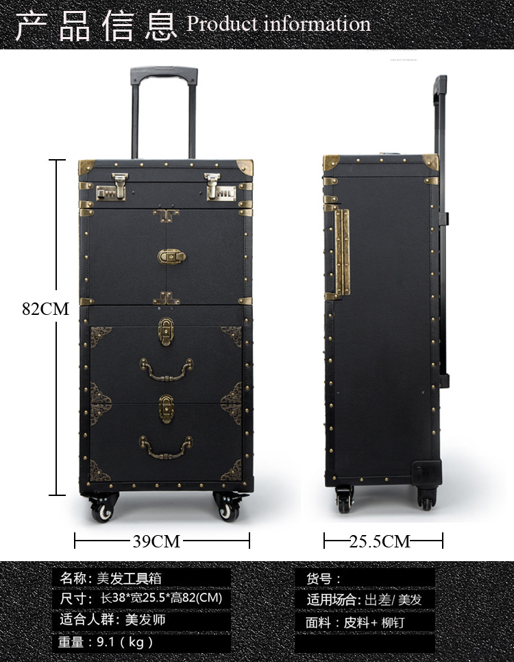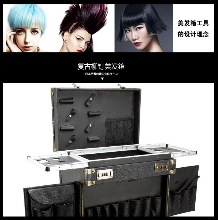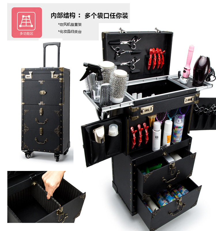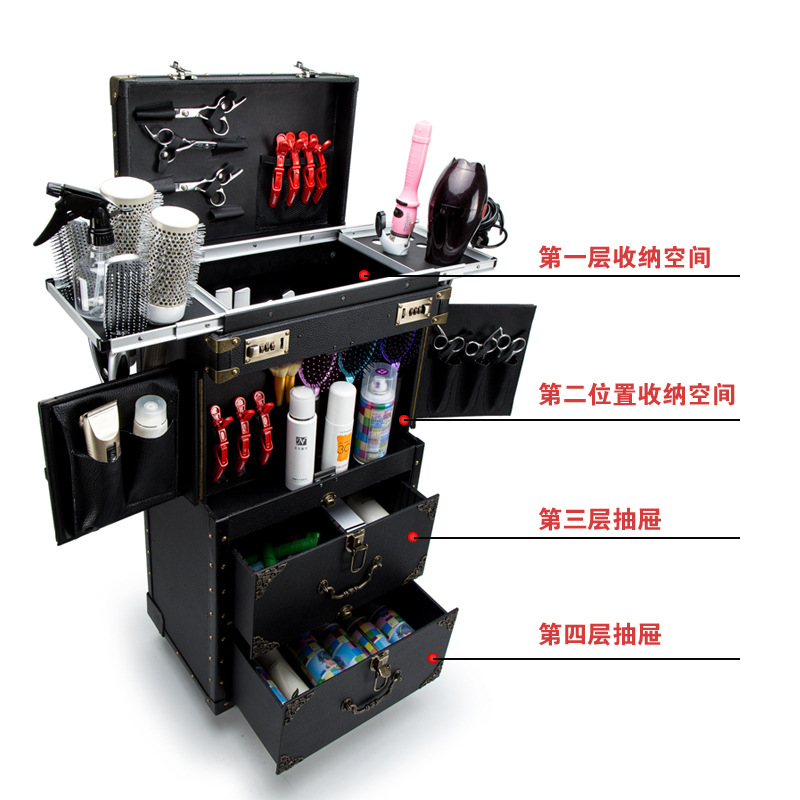 美发工具箱拉杆柳钉复古发型师美发店抽屉可拆档板工具箱朋克