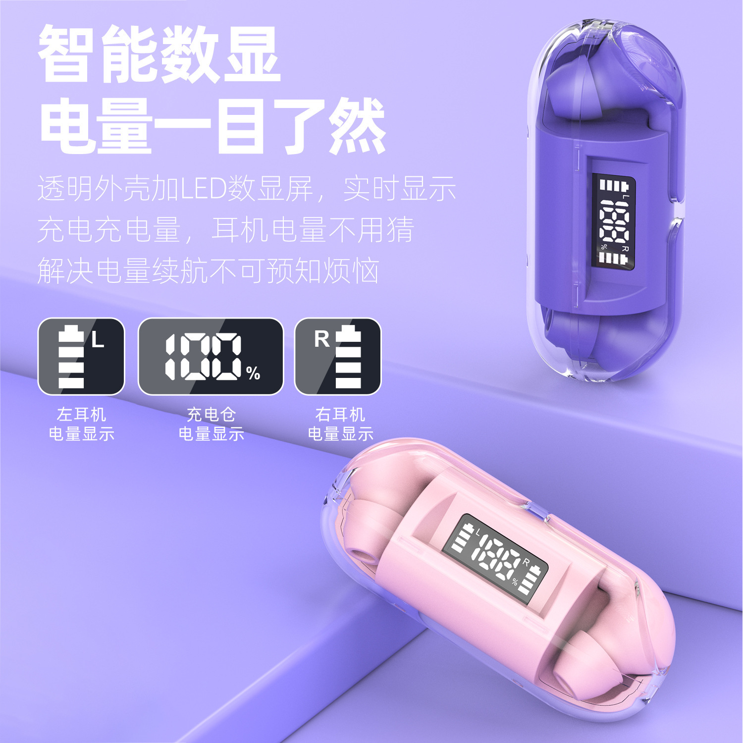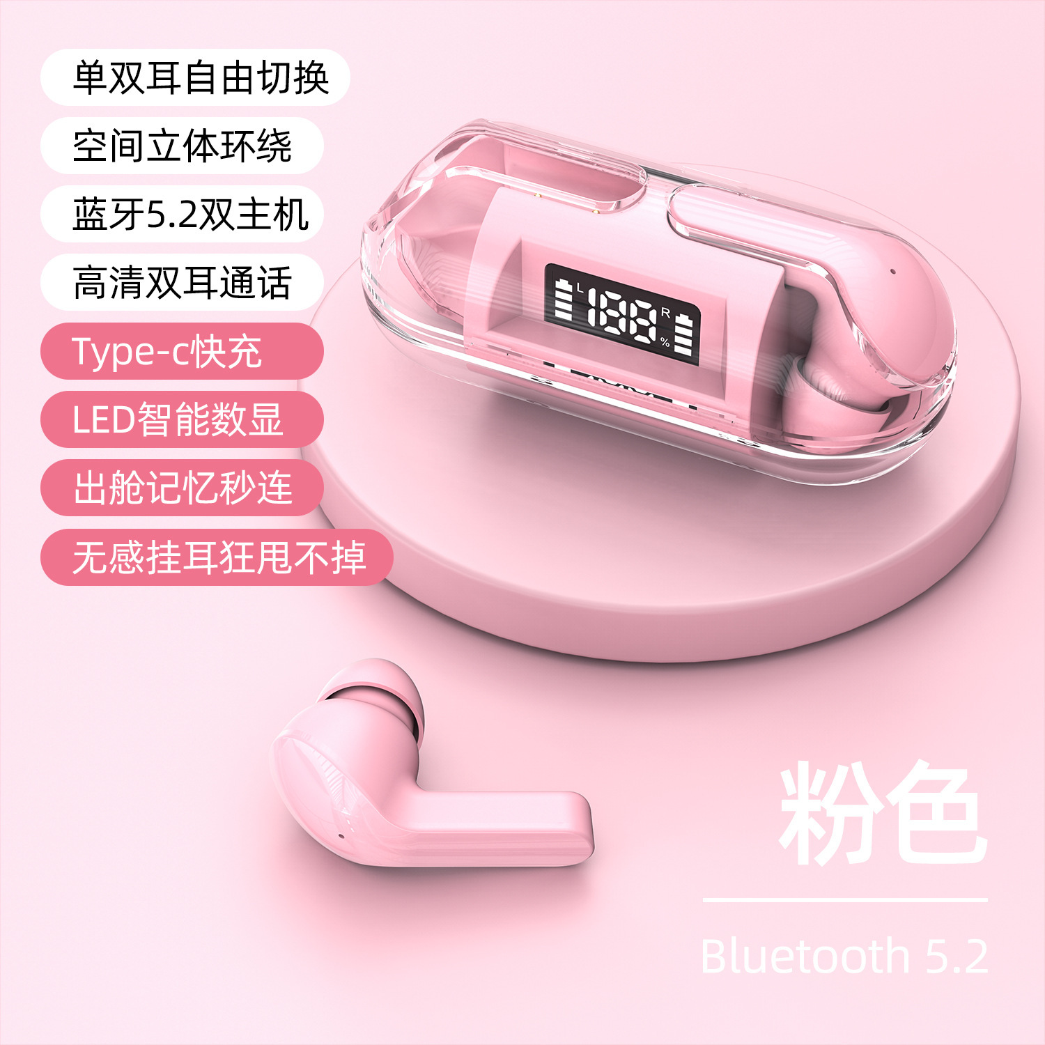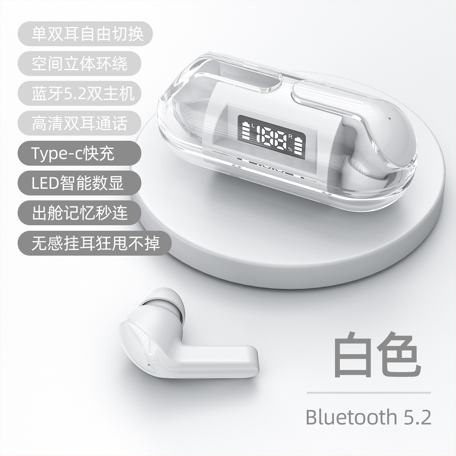 跨境新款透明壳数显F20无线蓝牙耳机TWS迷你入耳式无线运动耳机