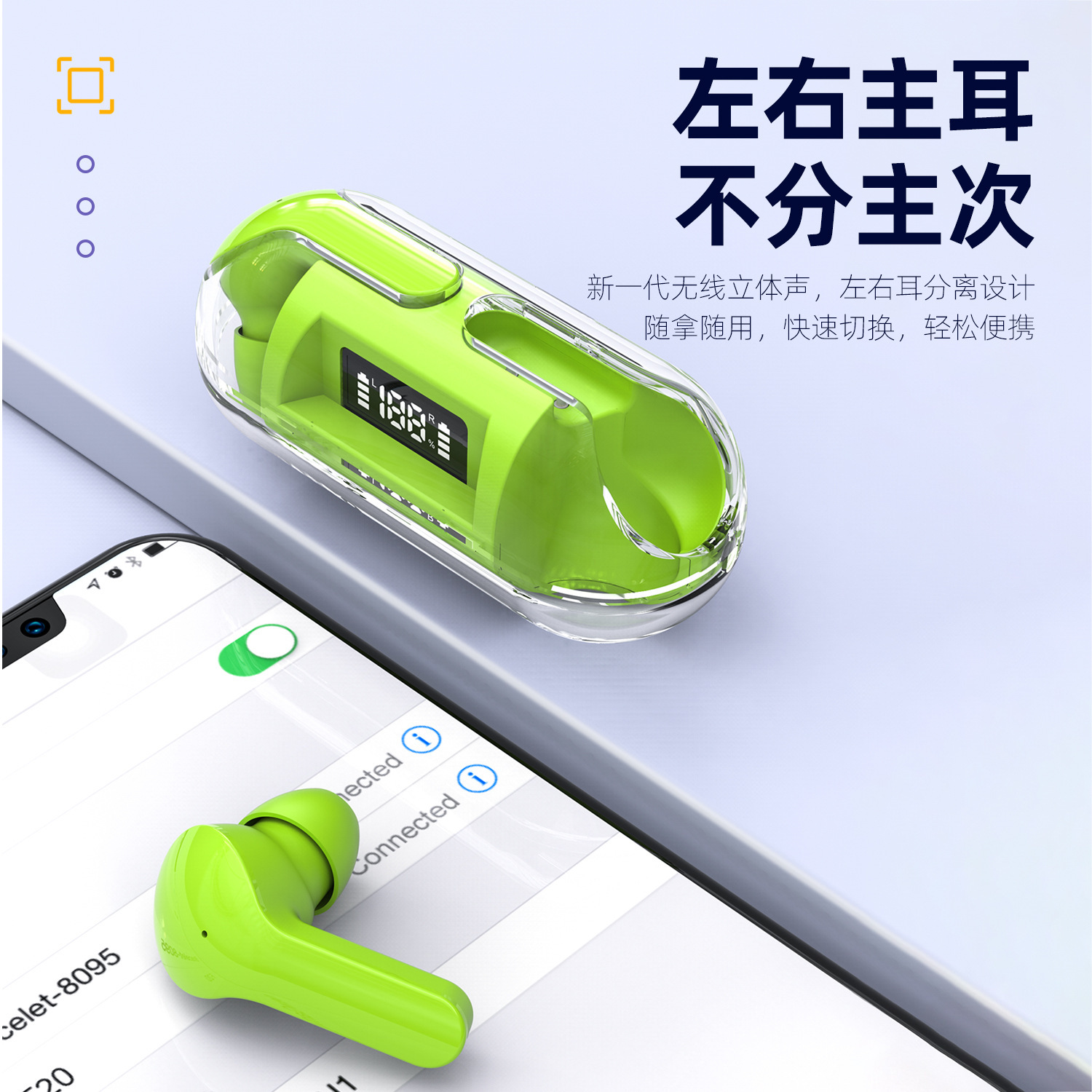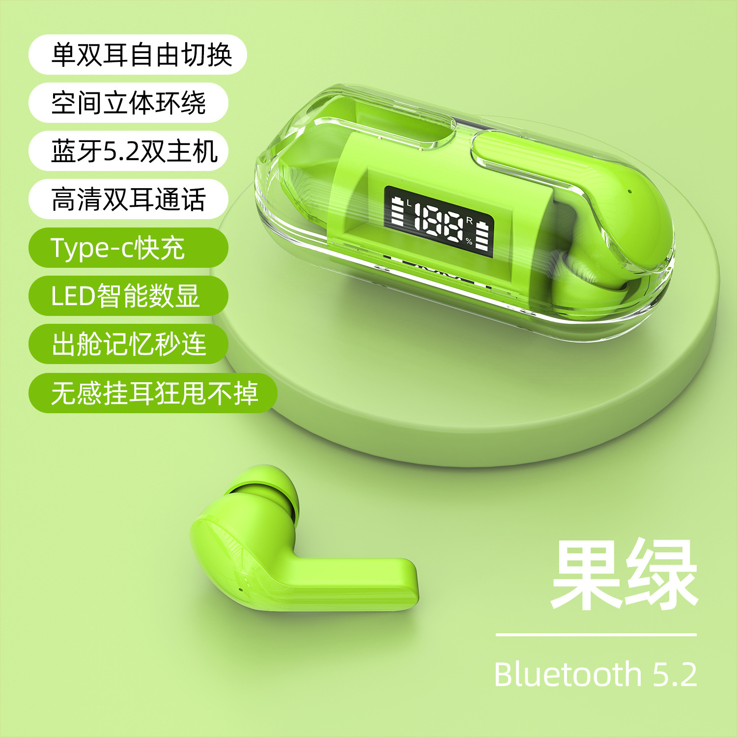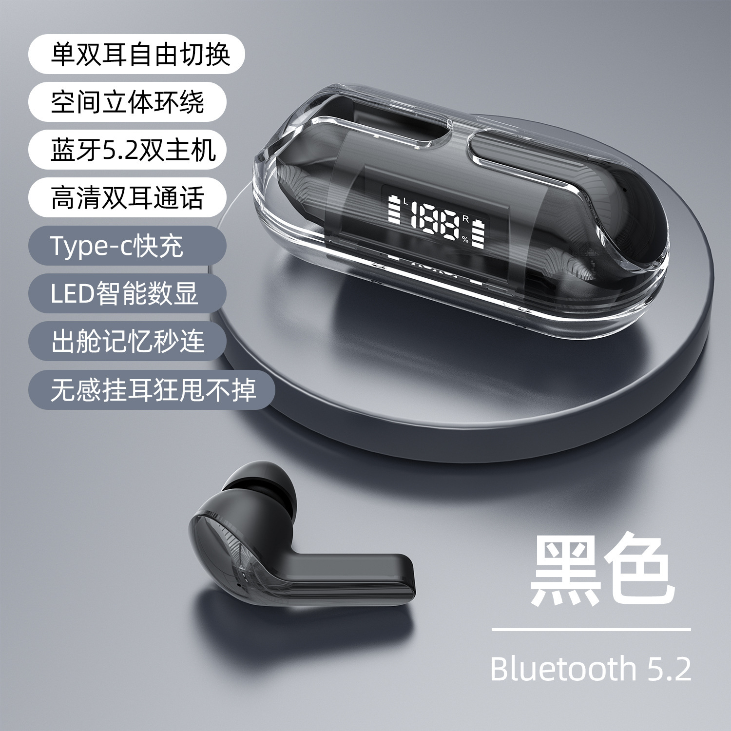 跨境新款透明壳数显F20无线蓝牙耳机TWS迷你入耳式无线运动耳机