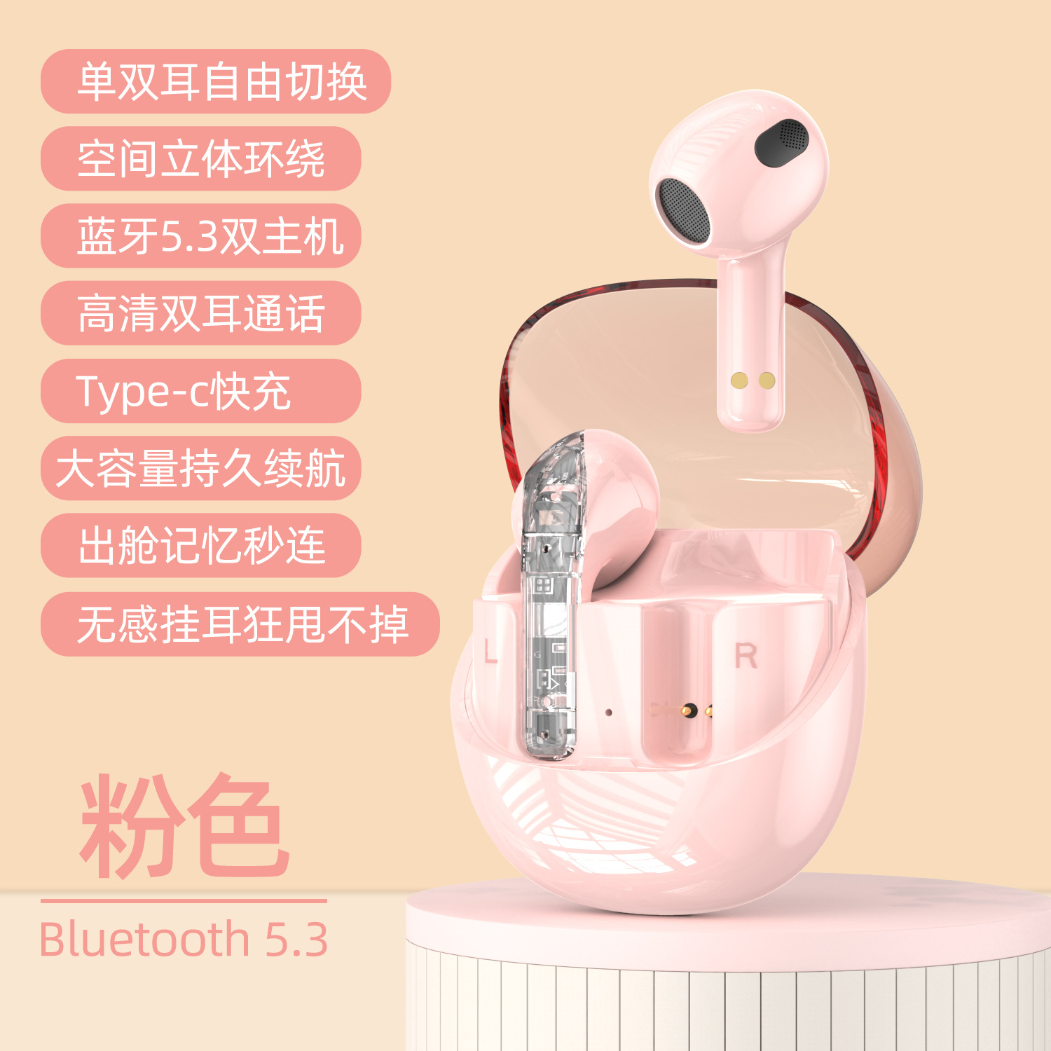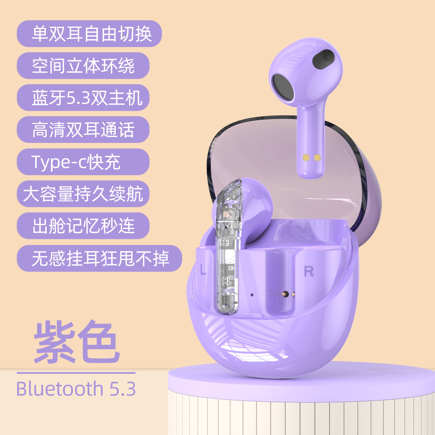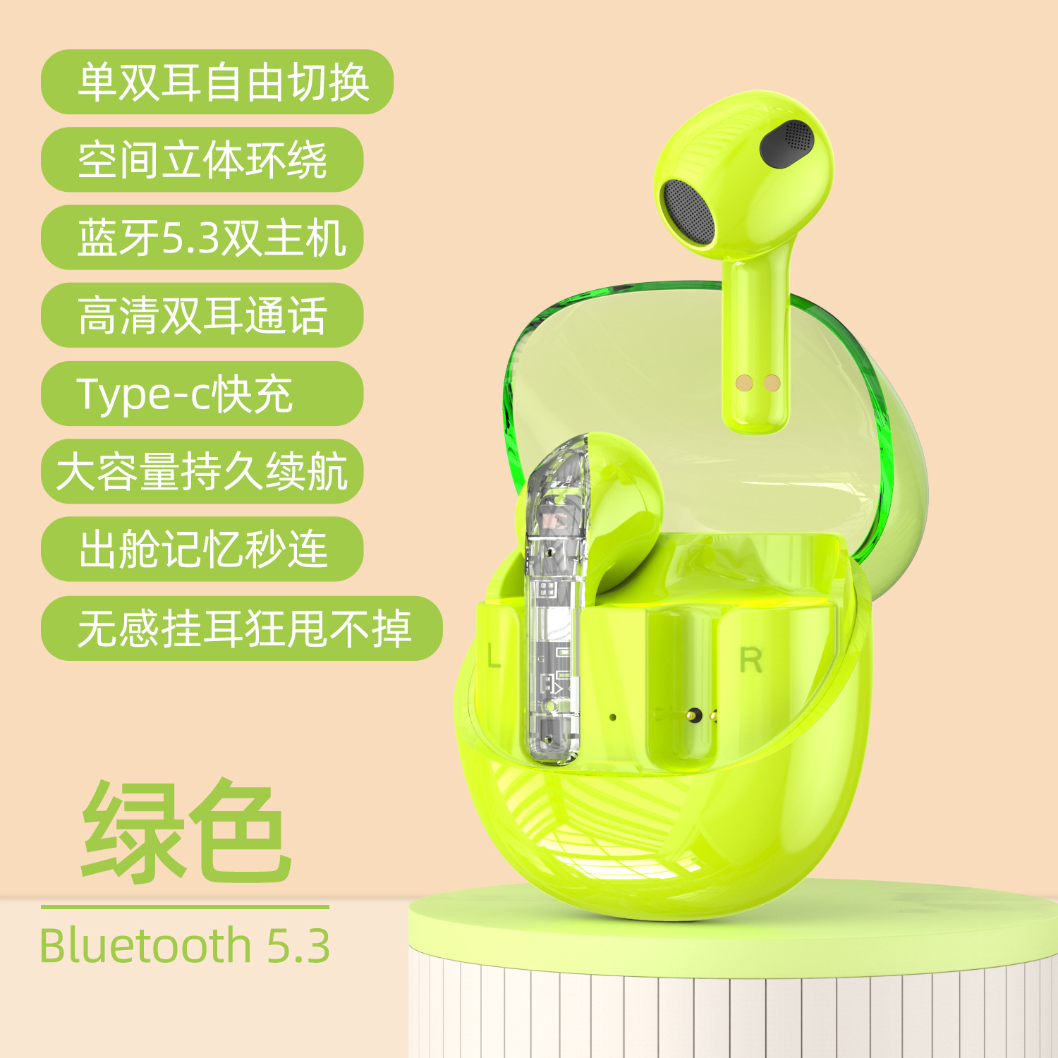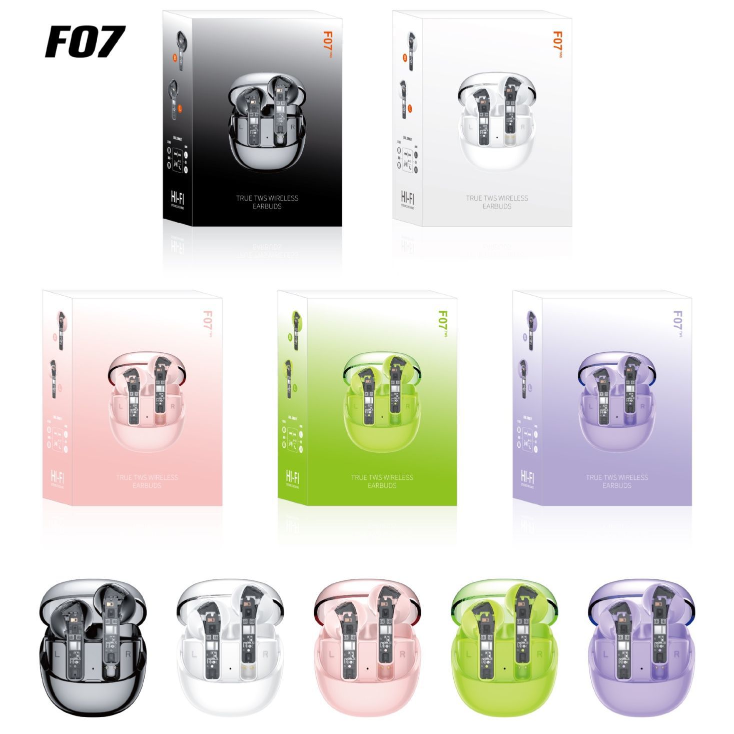 跨境新款 F07无线蓝牙耳机5.3半透明多彩运动耳机低延迟长续航TWS