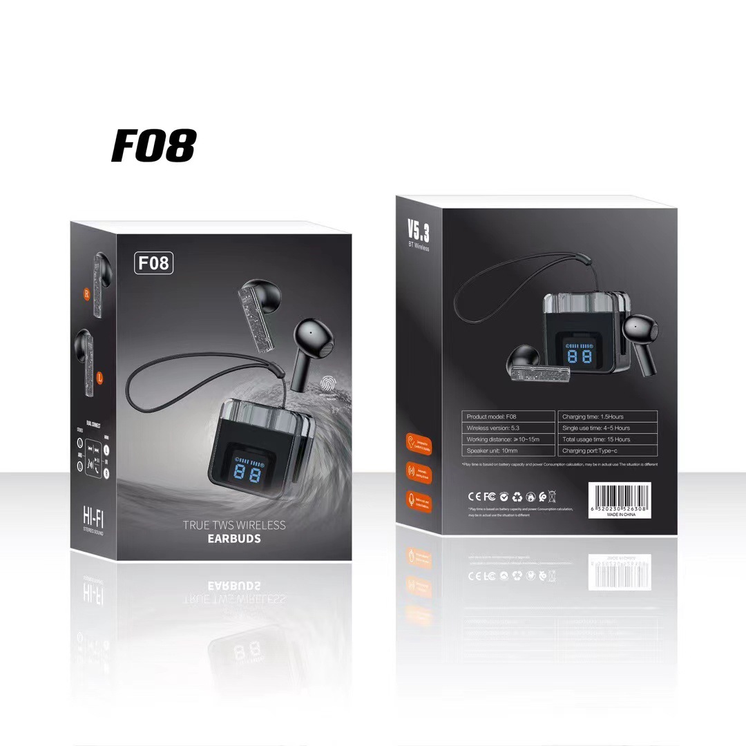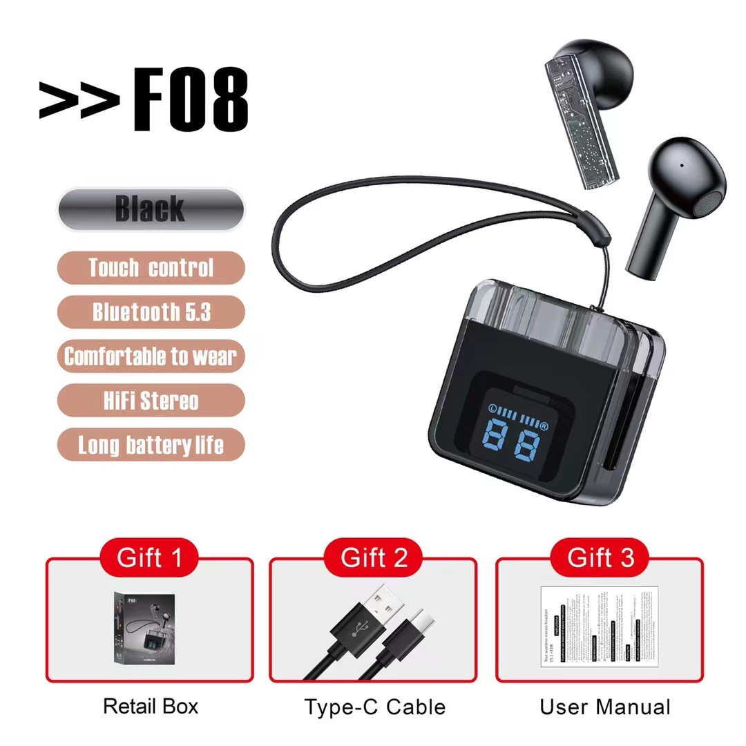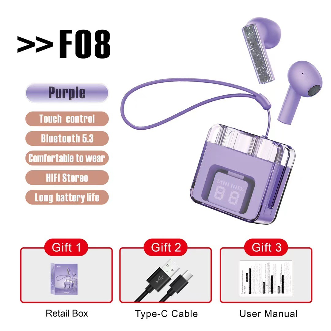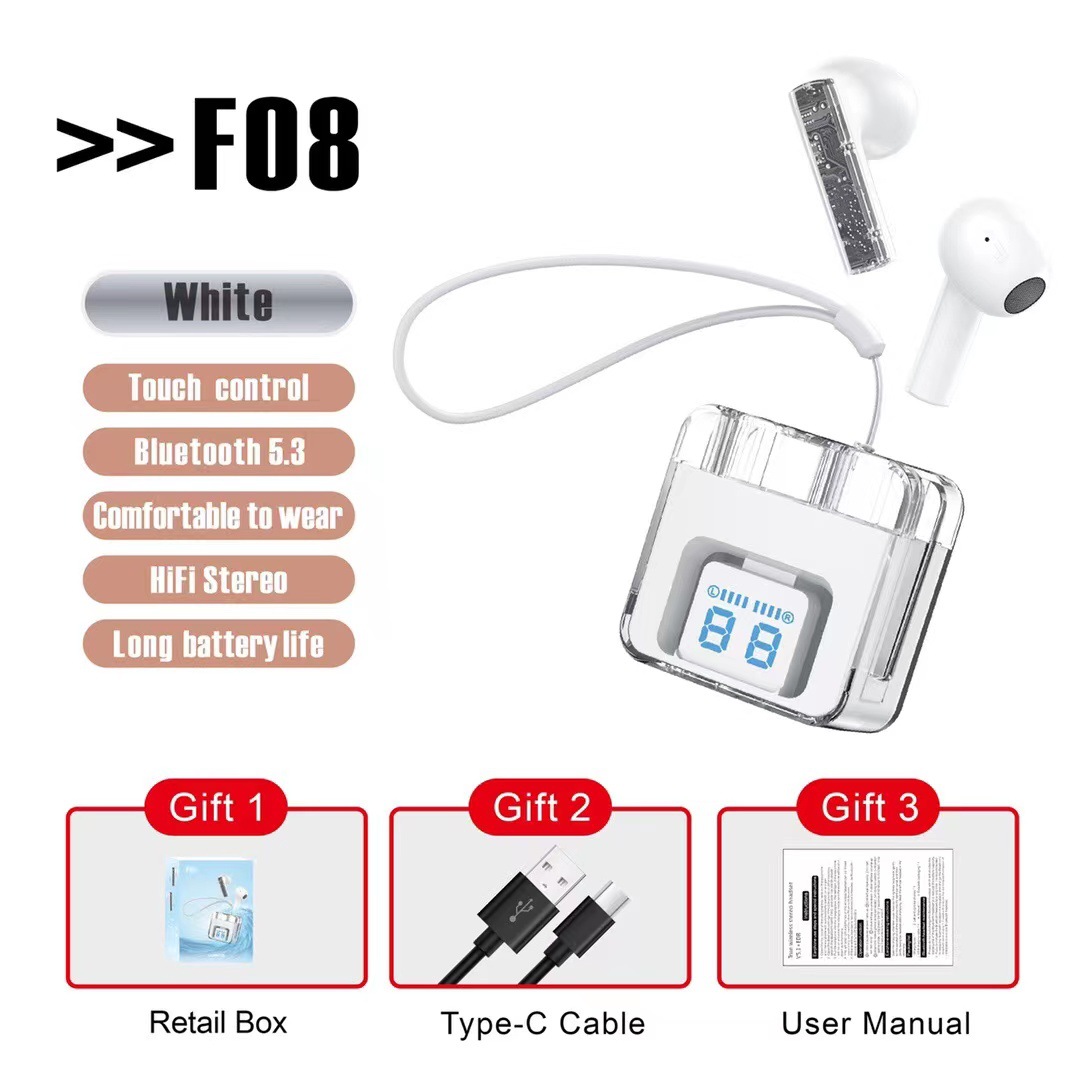F08 新款TWS透明挂绳蓝牙耳机无线降噪创意便携迷你跨境爆款耳机
