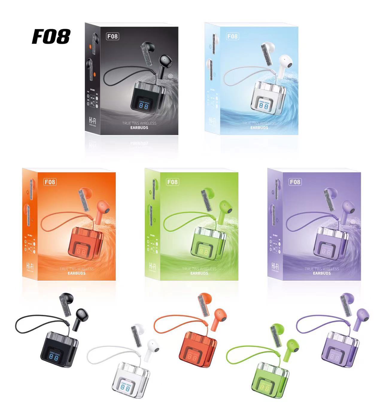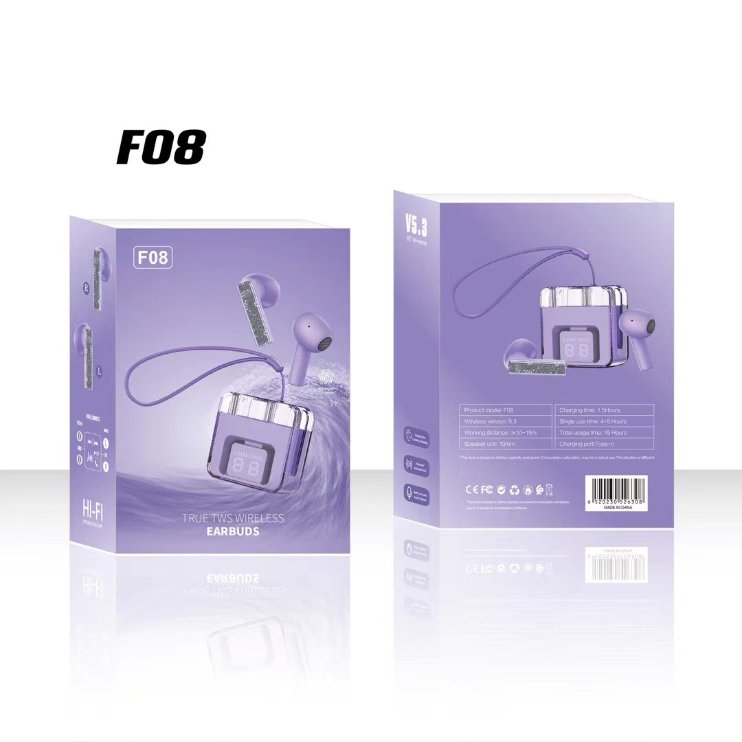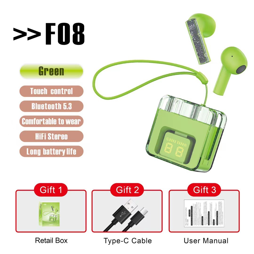 F08 新款TWS透明挂绳蓝牙耳机无线降噪创意便携迷你跨境爆款耳机