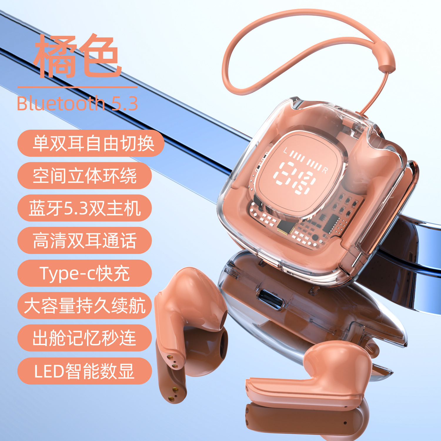 跨境新款 F11无线蓝牙耳机5.3带数显半透明多彩TWS低延迟运动耳机