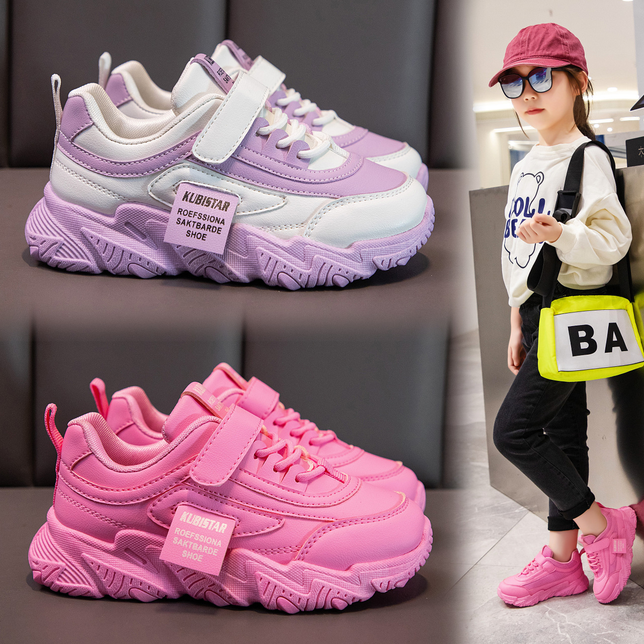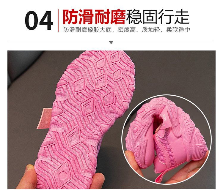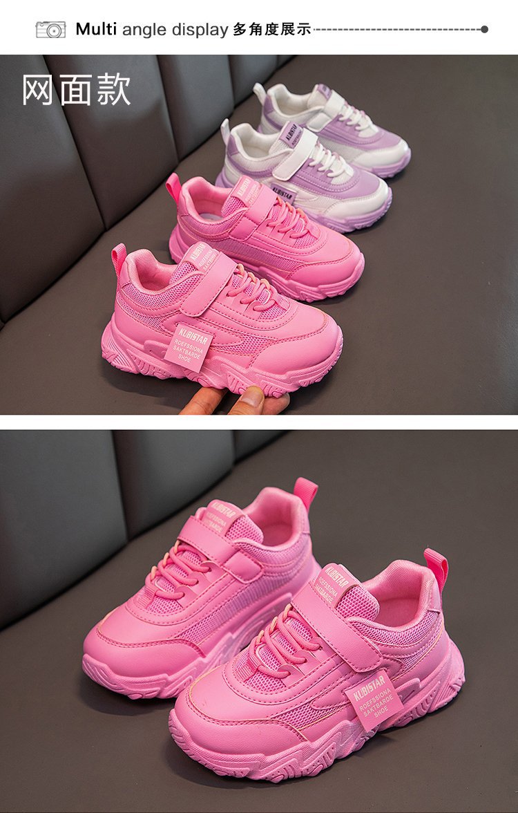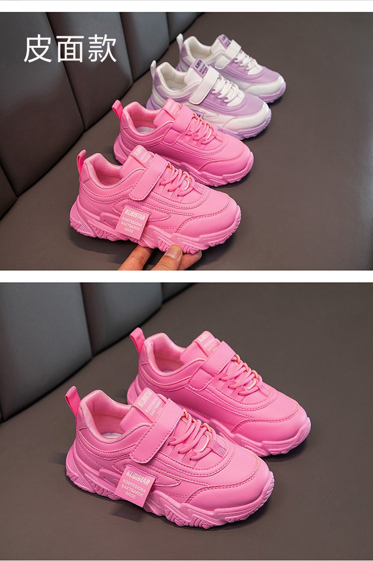 女童鞋子2024春季新款中大童小学生皮面儿童鞋小女孩网面运动鞋