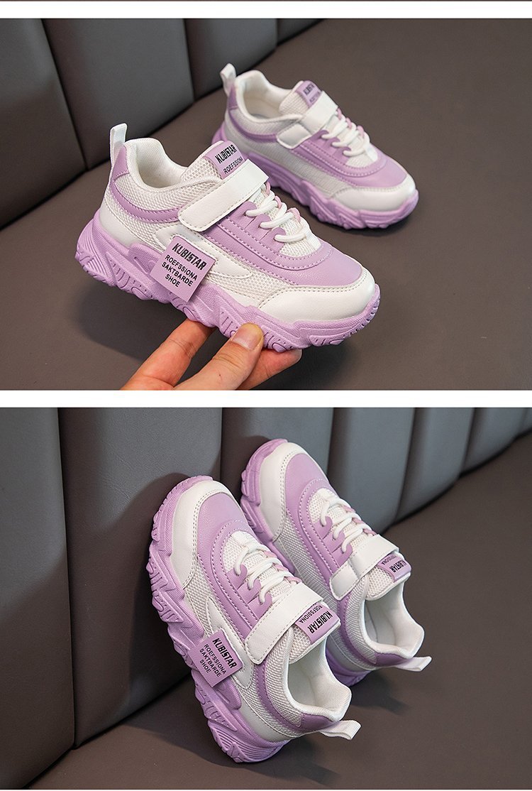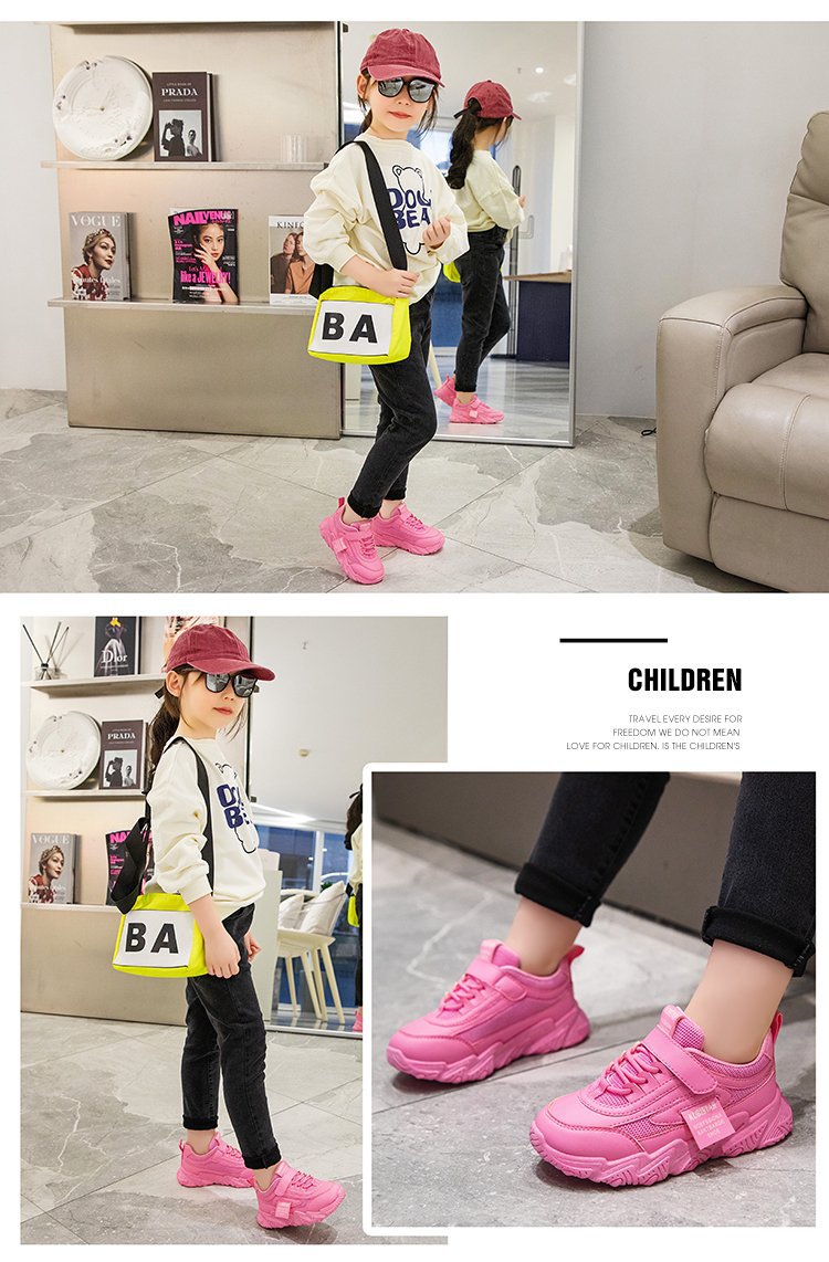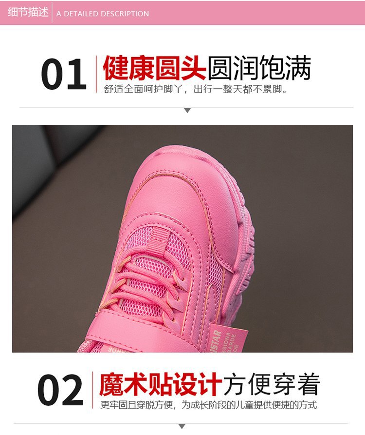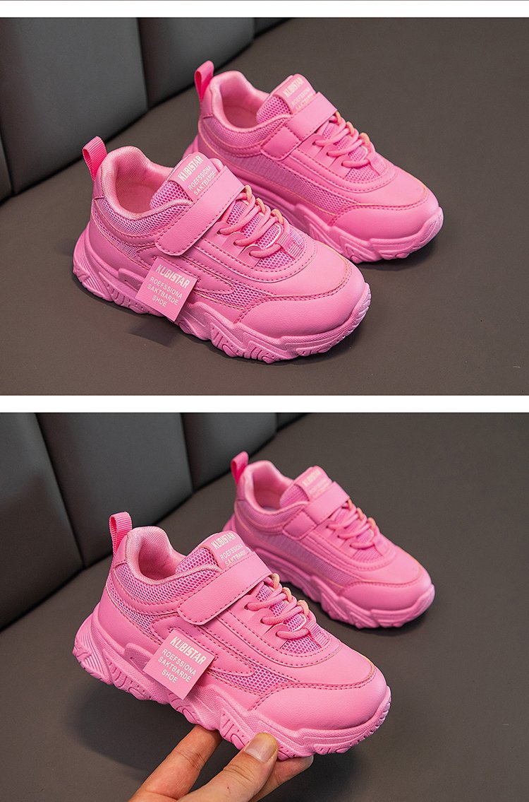 女童鞋子2024春季新款中大童小学生皮面儿童鞋小女孩网面运动鞋