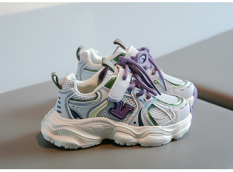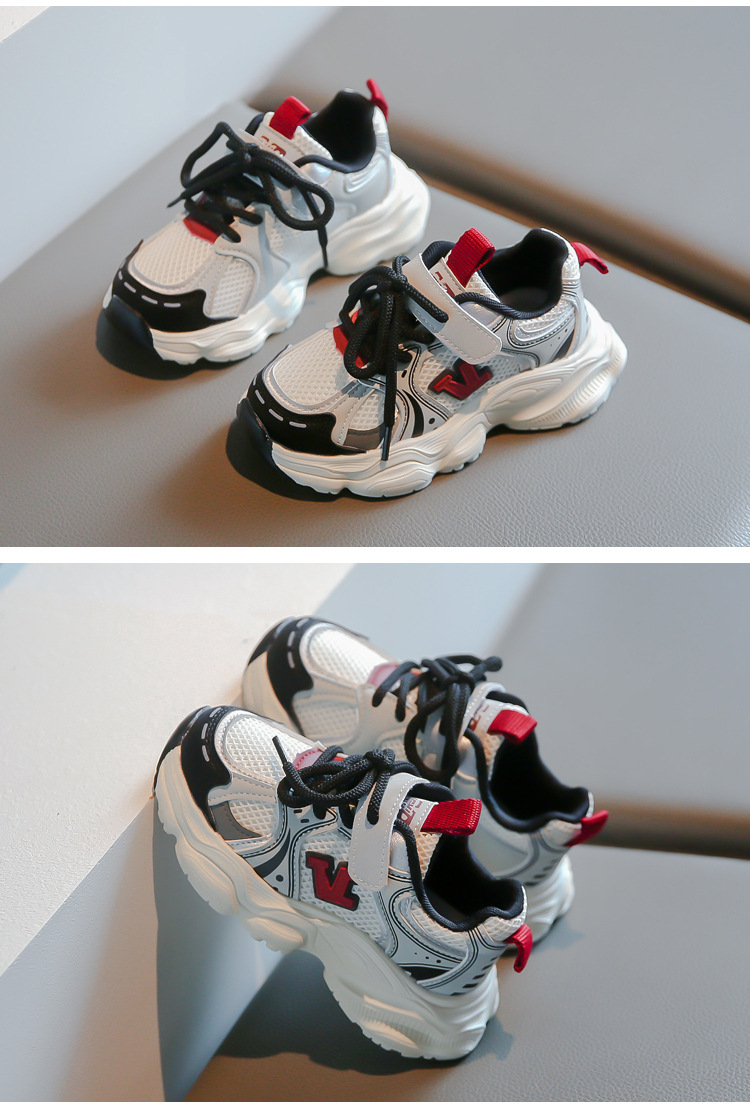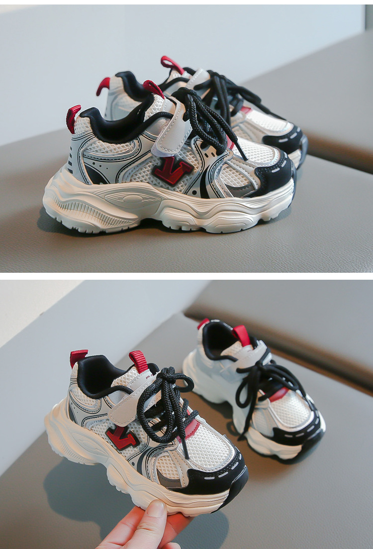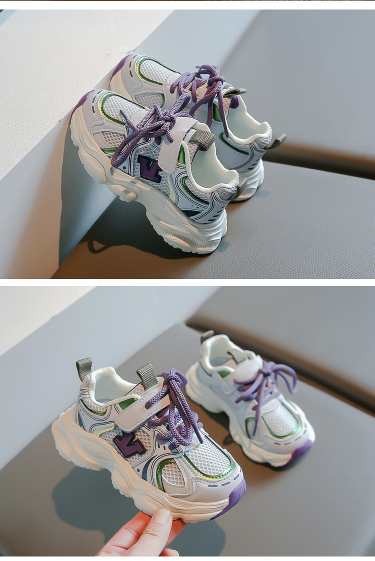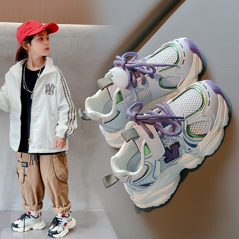 2024春季新款时尚字母女童运动鞋男童网面透气跑步鞋儿童篮球鞋