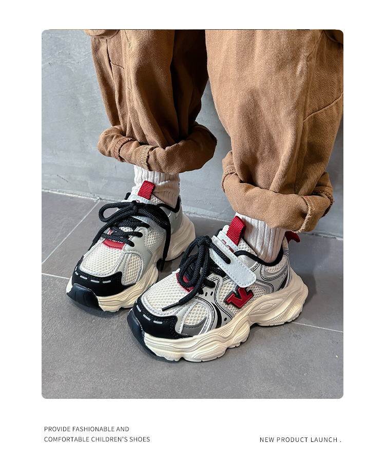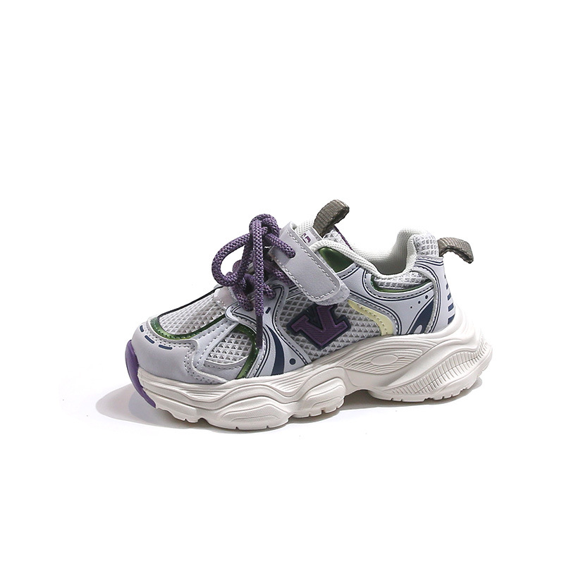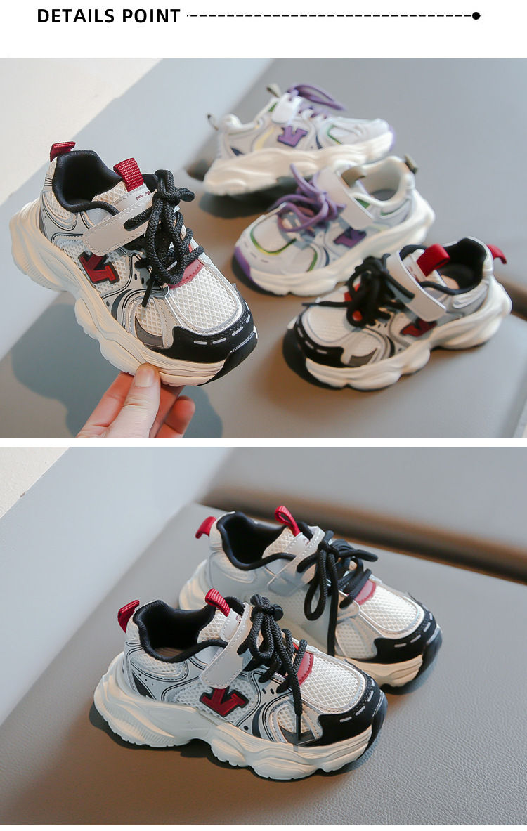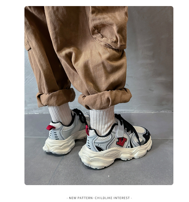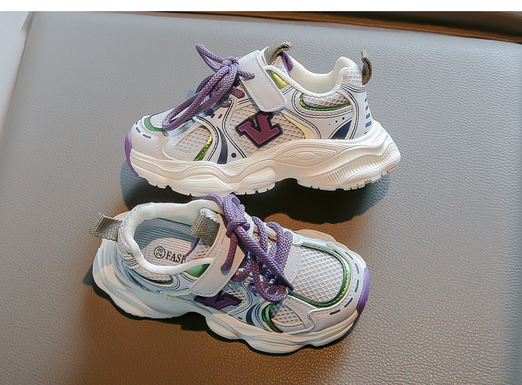 2024春季新款时尚字母女童运动鞋男童网面透气跑步鞋儿童篮球鞋
