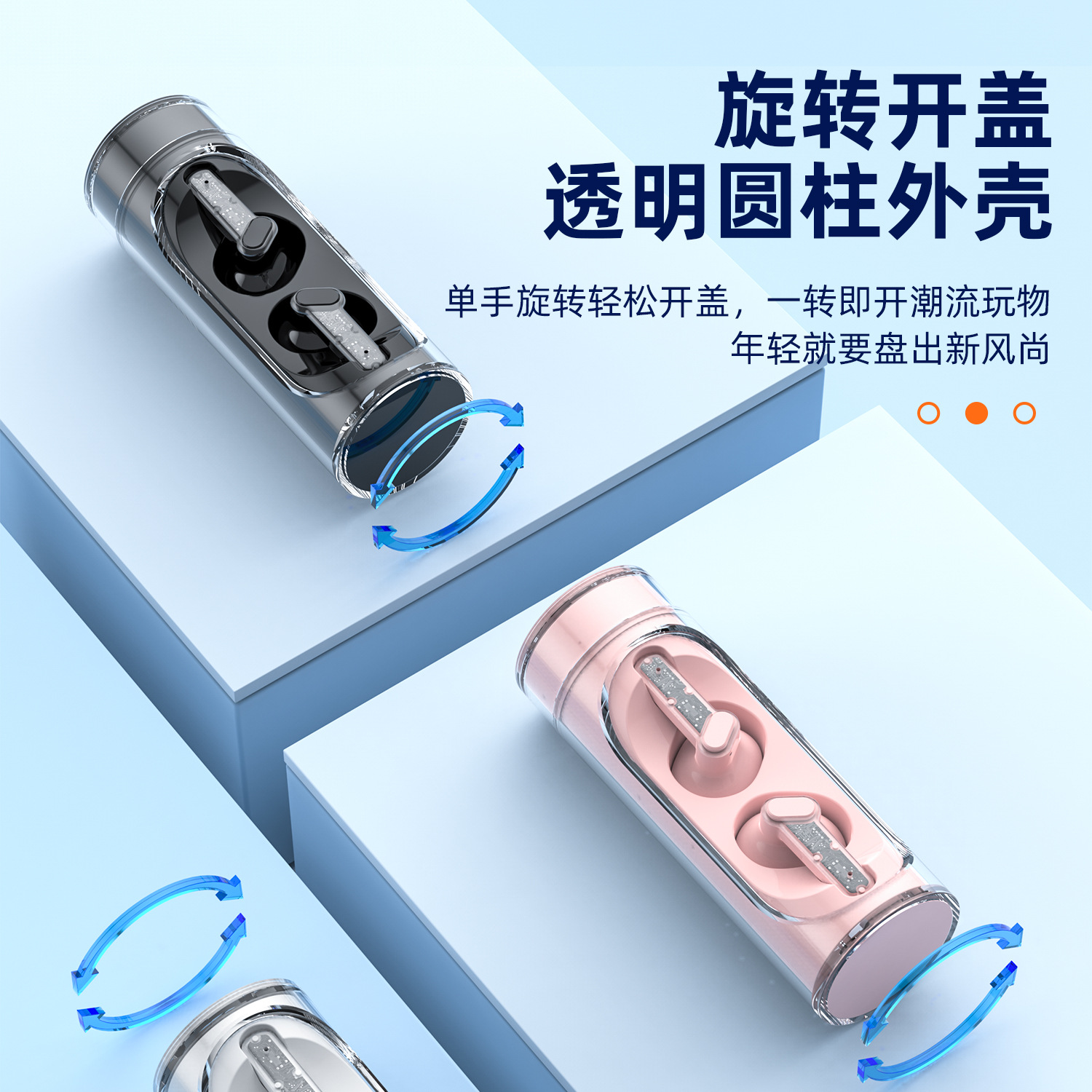 跨境新款 F06无线蓝牙耳机5.3旋转式透明运动耳机低延迟长续航TWS