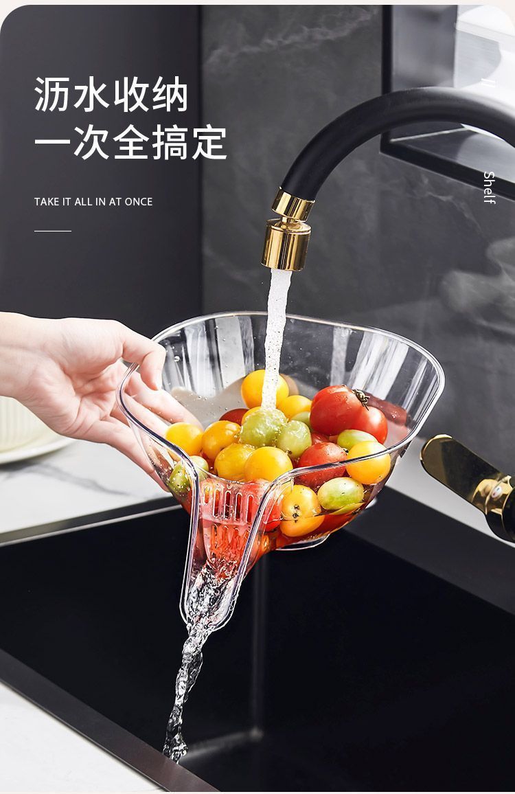 爆款多功能PET新款沥水篮洗米家用洗菜果蔬厨房篮子水果盘篮