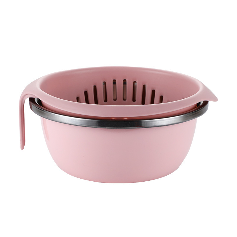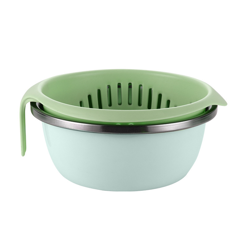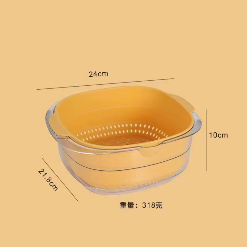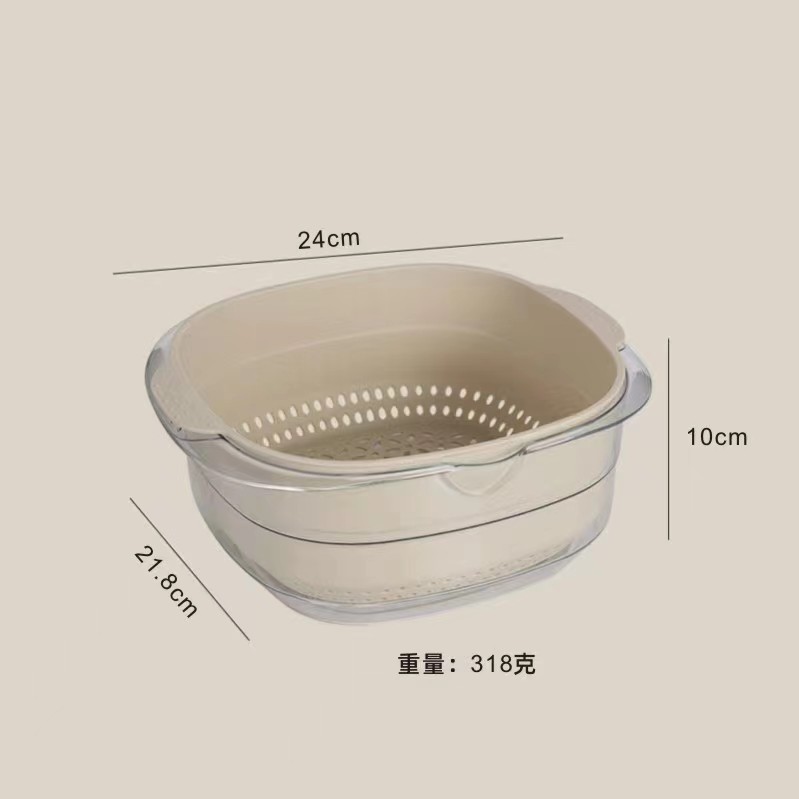 厨房加厚水果蔬菜双层沥水篮 家用北欧风塑料透明双层淘菜洗菜盆