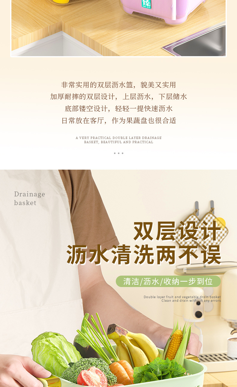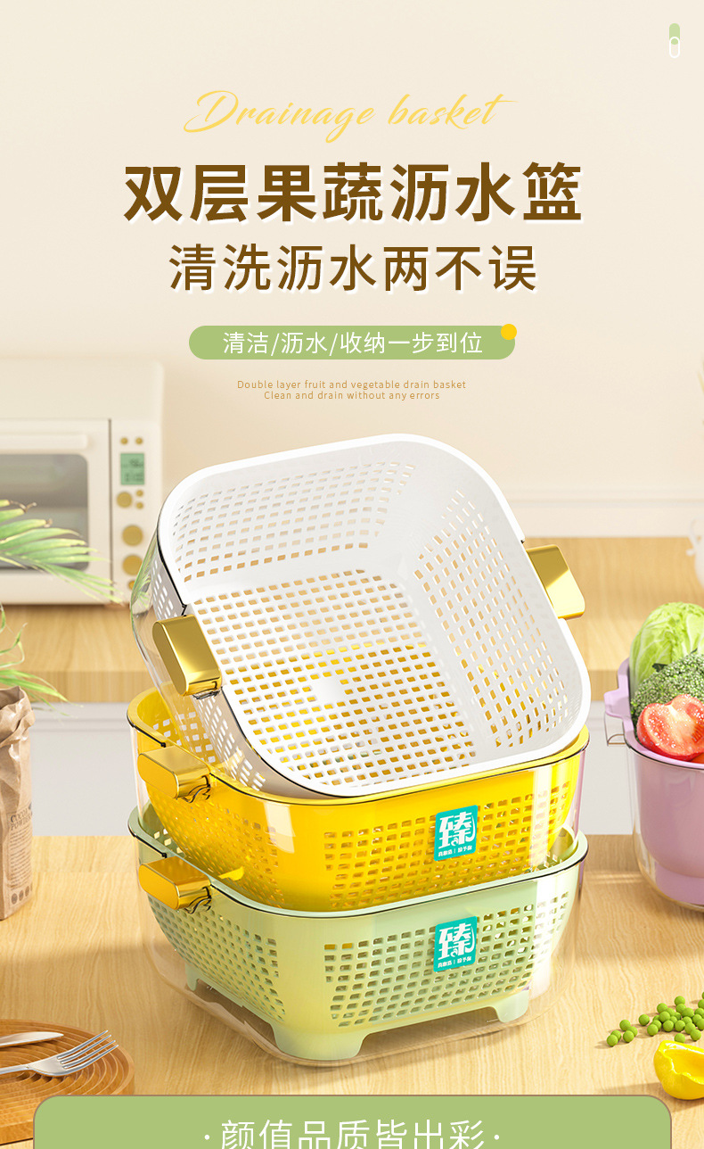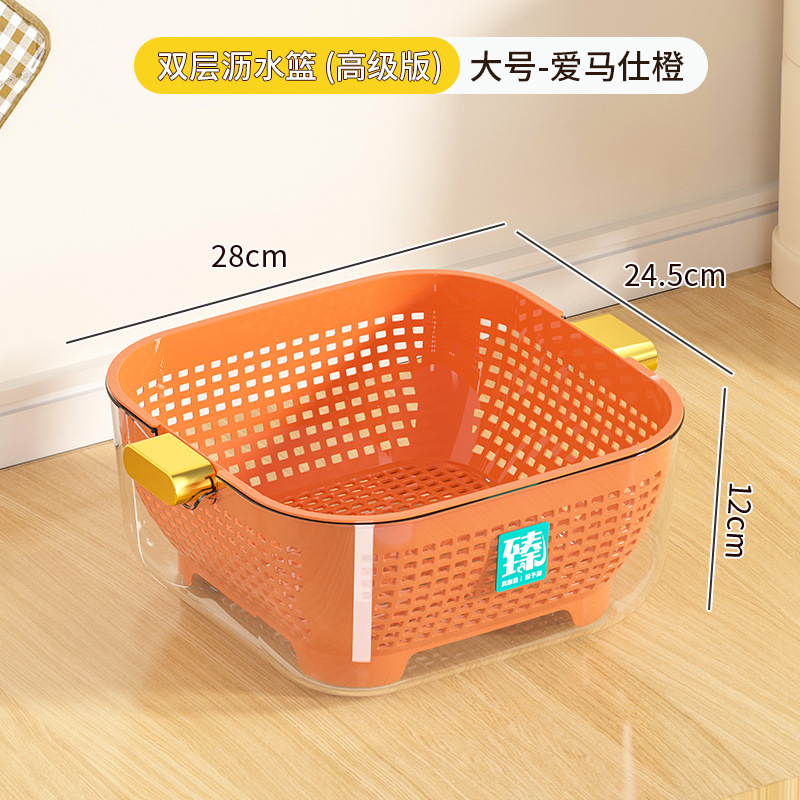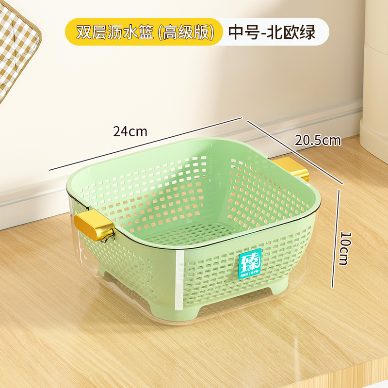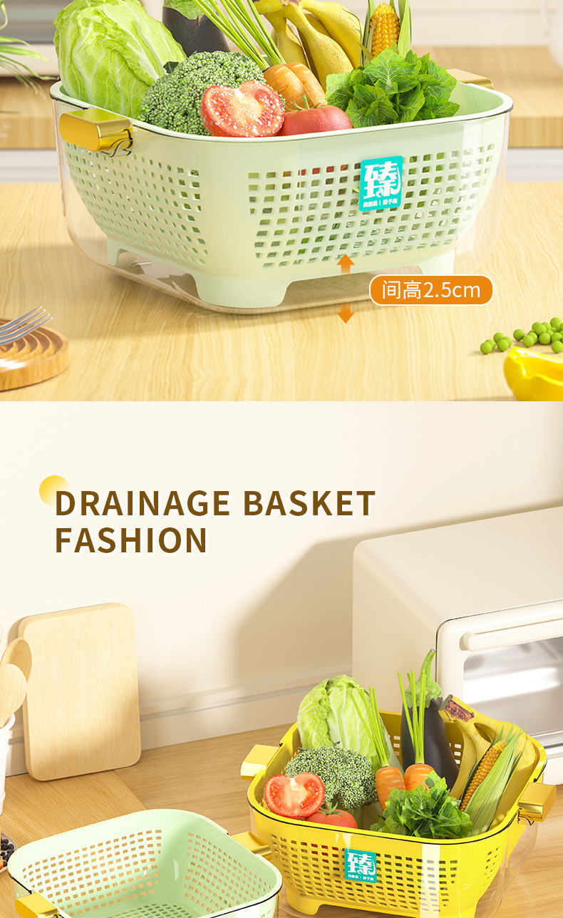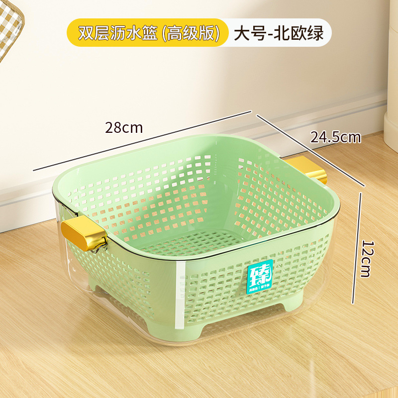 PET双层沥水篮家用蔬菜水果大容量收纳篮子厨房多功能果蔬洗菜篮