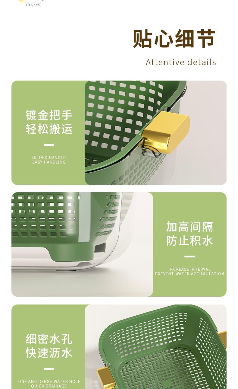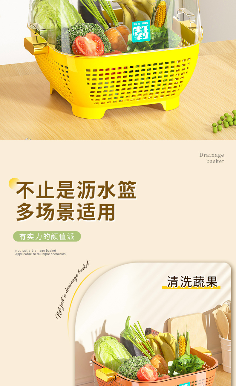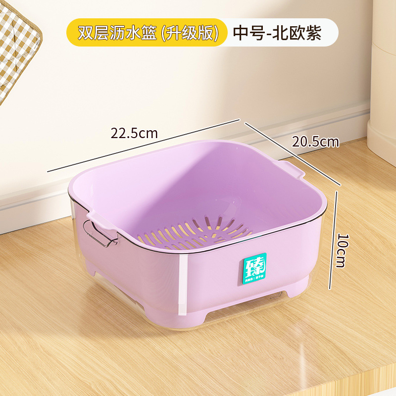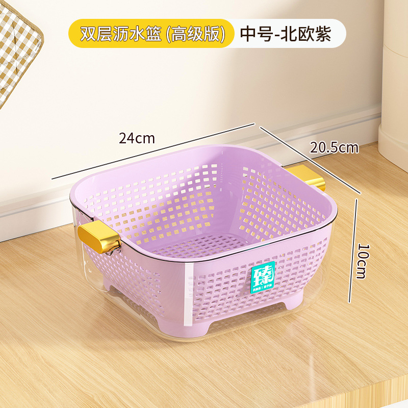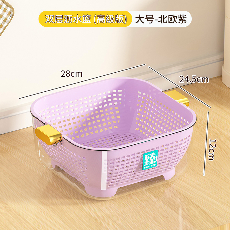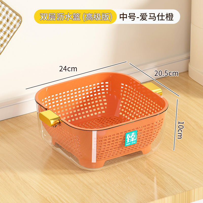 PET双层沥水篮家用蔬菜水果大容量收纳篮子厨房多功能果蔬洗菜篮