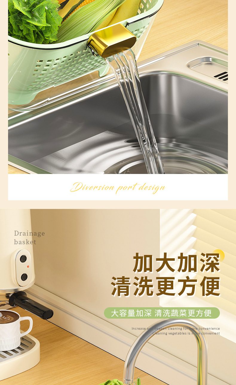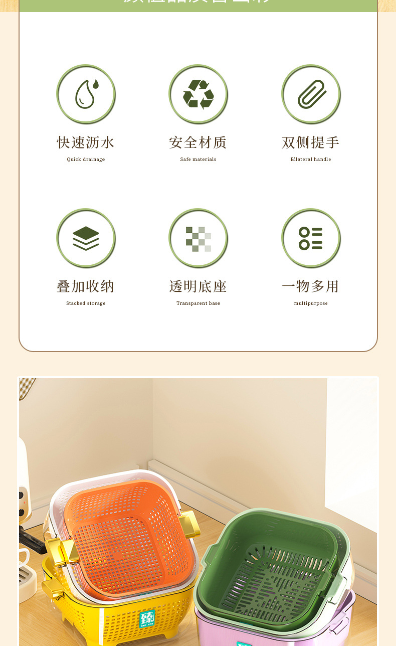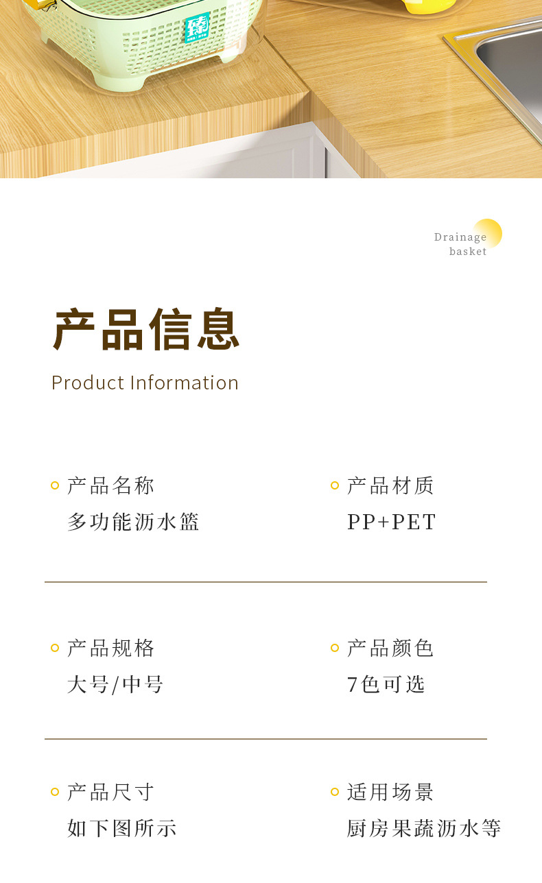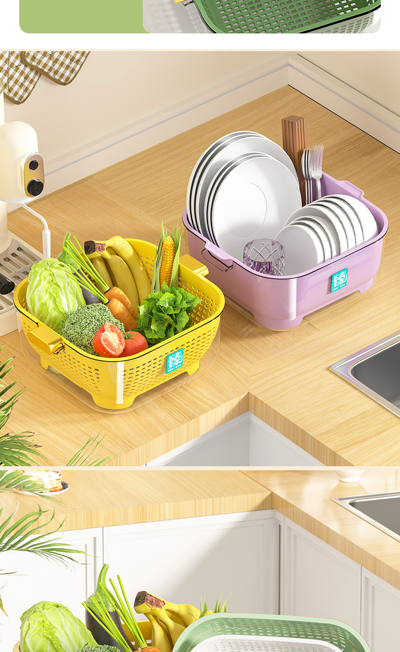 PET双层沥水篮家用蔬菜水果大容量收纳篮子厨房多功能果蔬洗菜篮