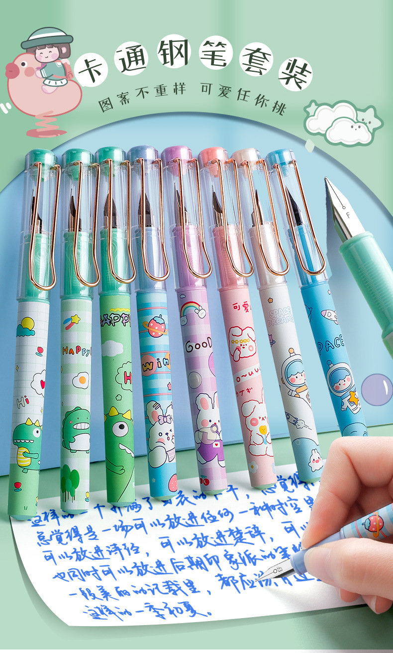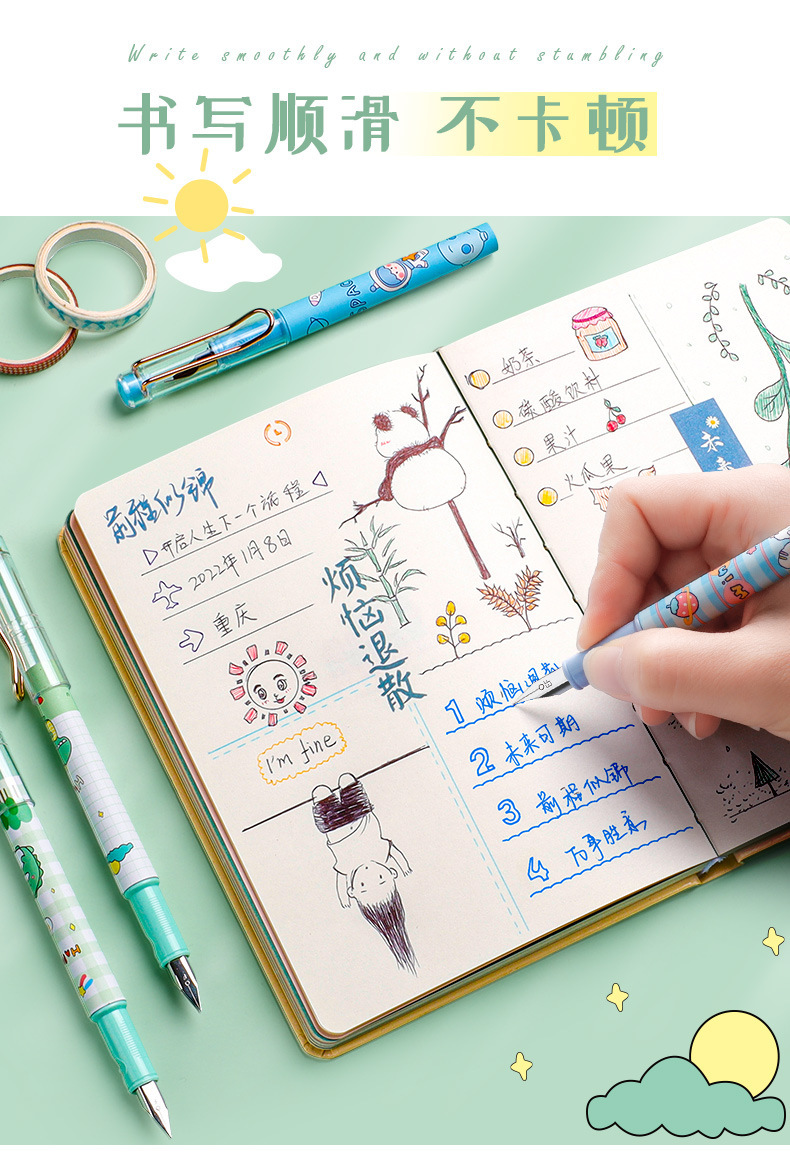 小学生高颜值可换墨囊钢笔套装可爱卡通儿童初学练字专用书写流畅