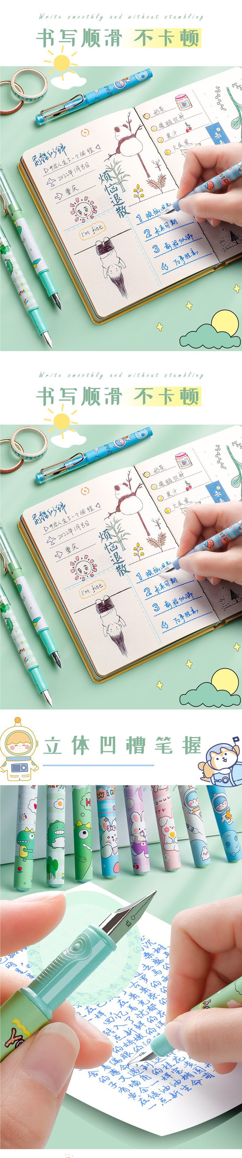 小学生高颜值可换墨囊钢笔套装可爱卡通儿童初学练字书写流畅