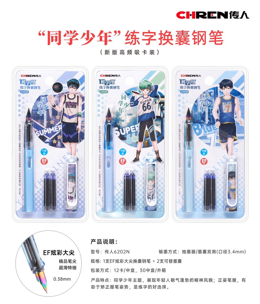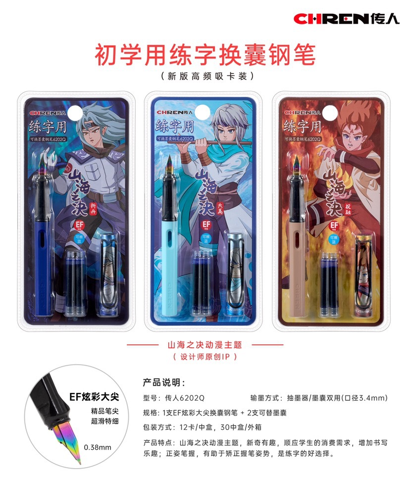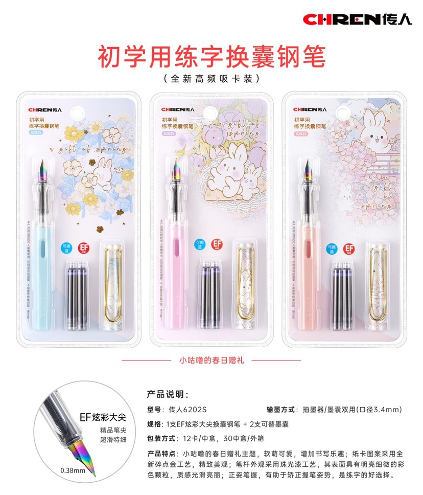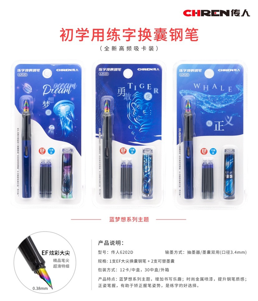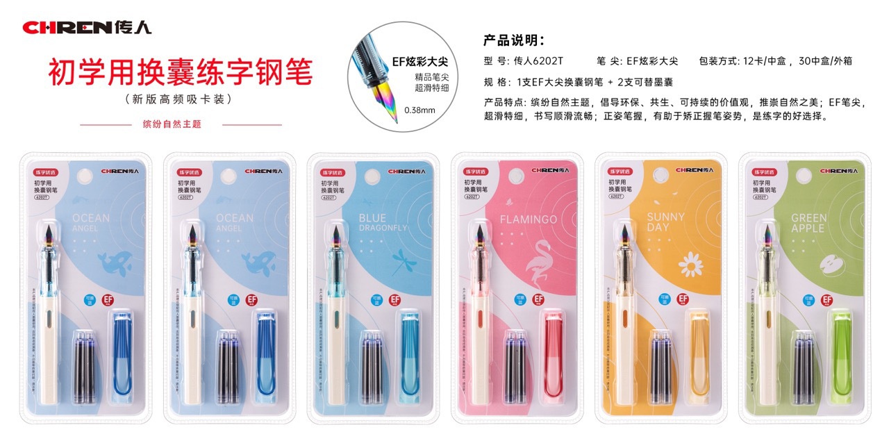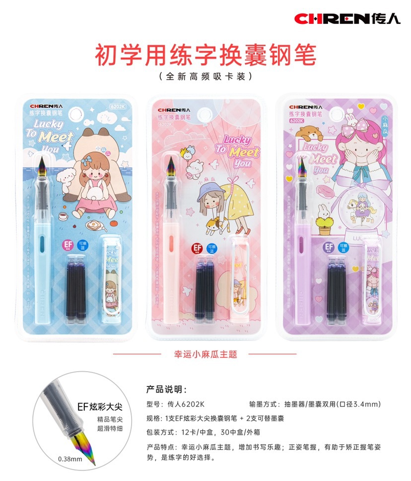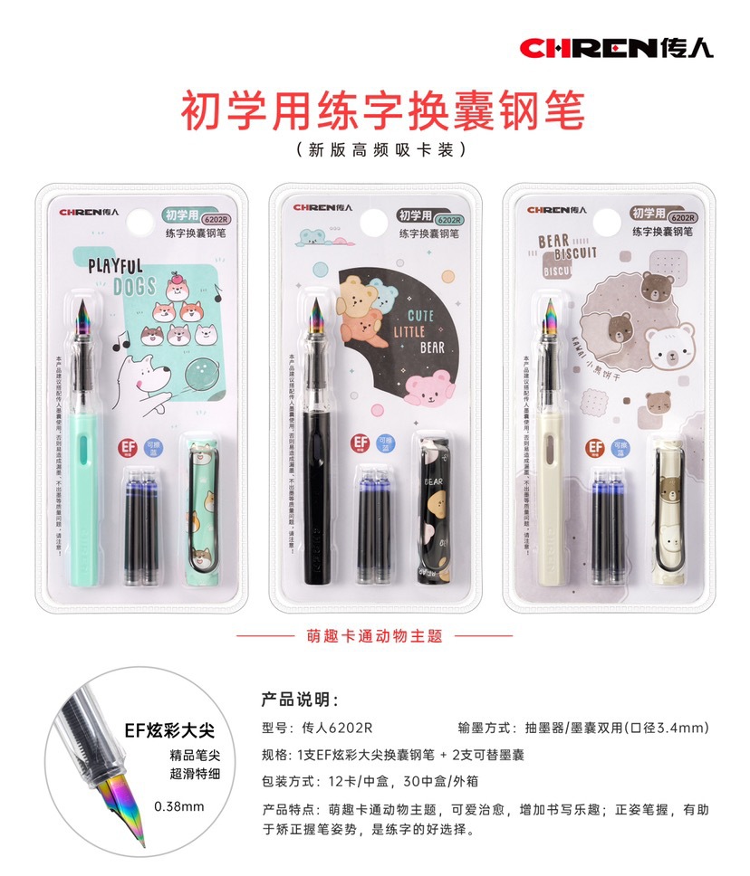 传人6202可替换墨囊钢笔三年级小学生练字正姿钢笔防近视卡通钢笔