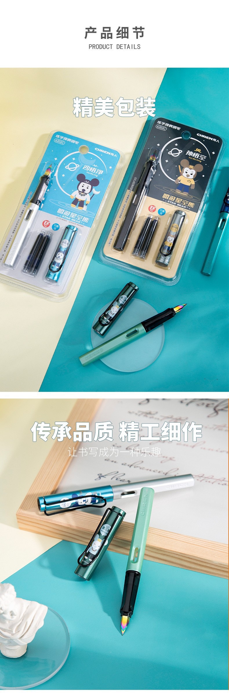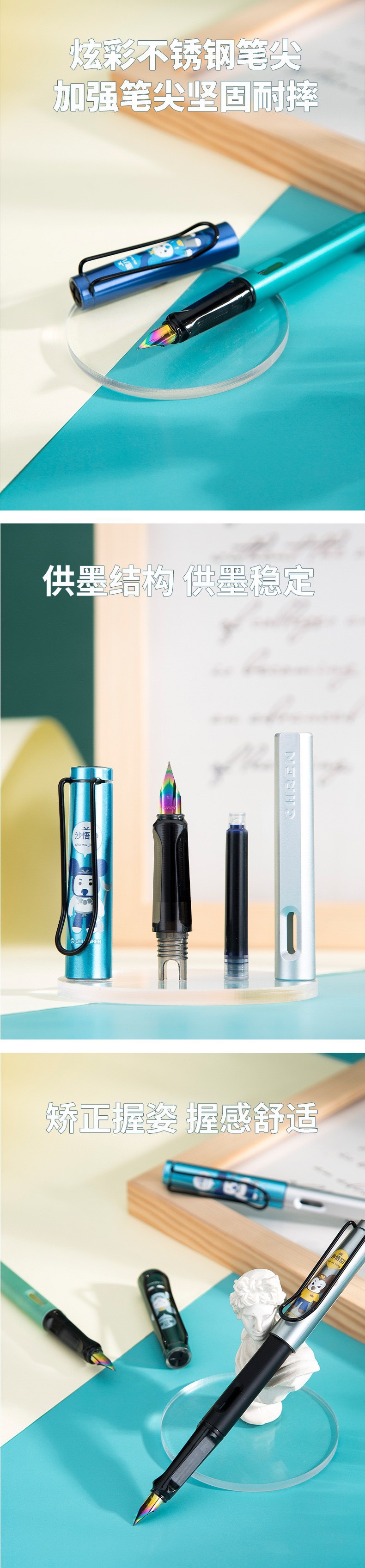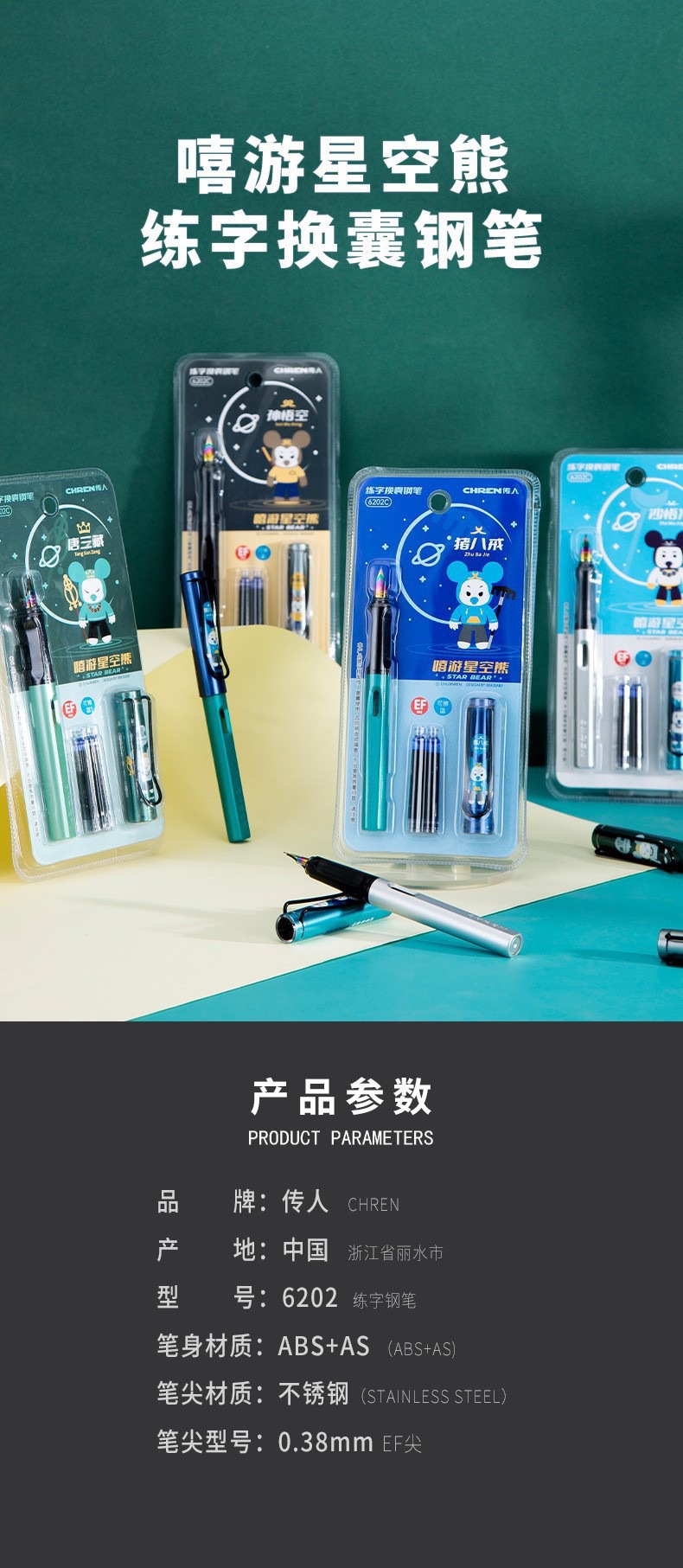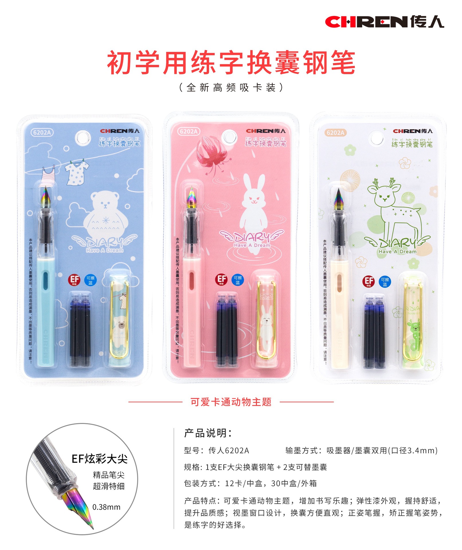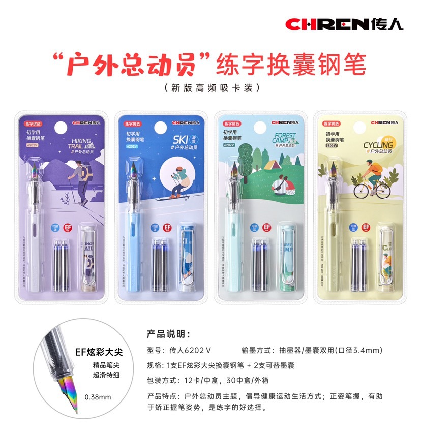 传人6202可替换墨囊钢笔三年级小学生练字正姿钢笔防近视卡通钢笔