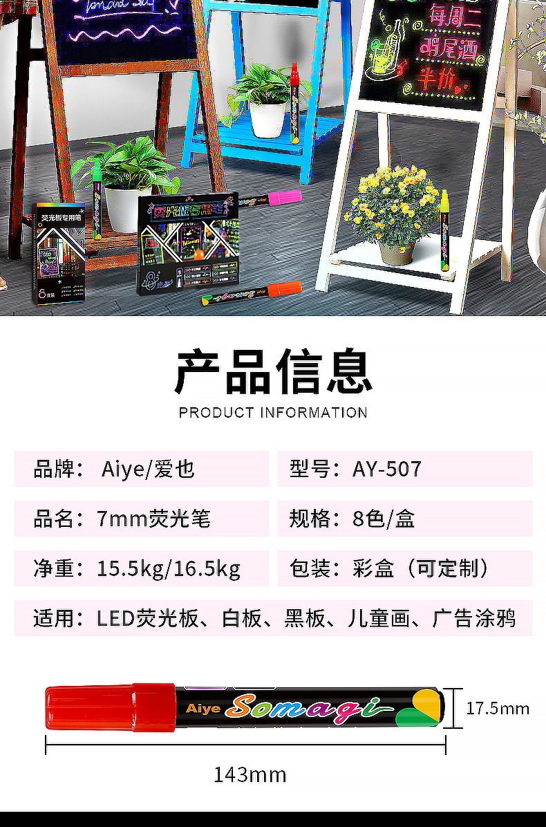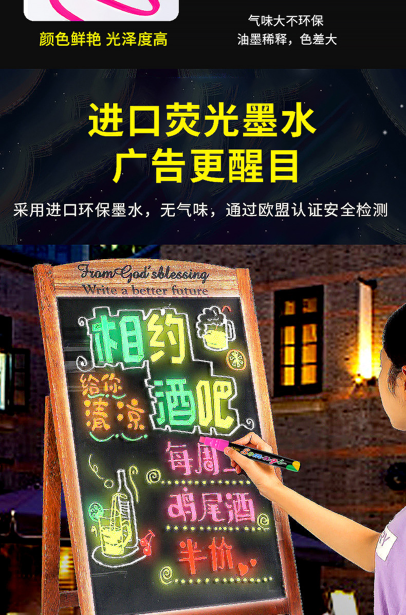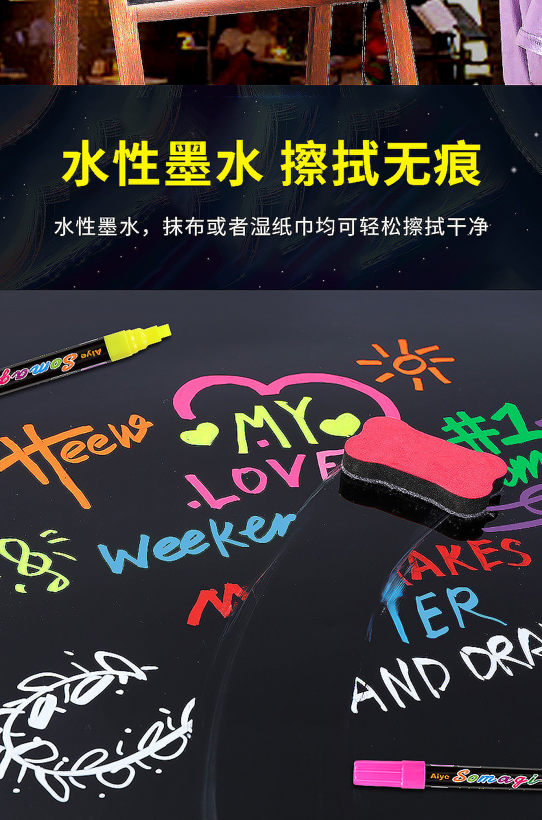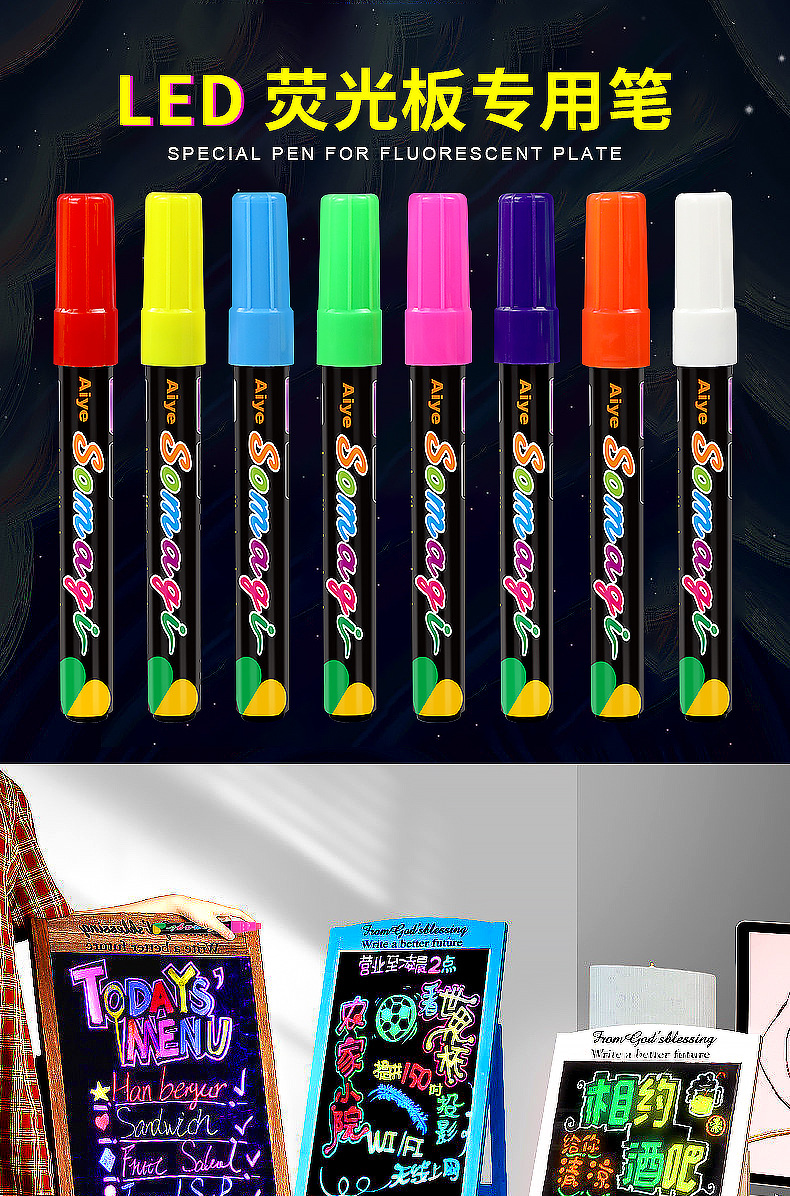 卡通LED荧光板专用笔平头可擦广告灯板笔黑板涂鸦液体粉笔荧光笔