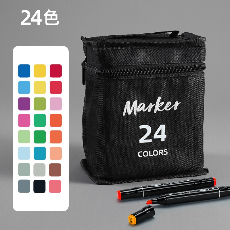 跨境双头马克笔塑料桶装开学季新品学生儿童卡通漫画彩笔批发代发