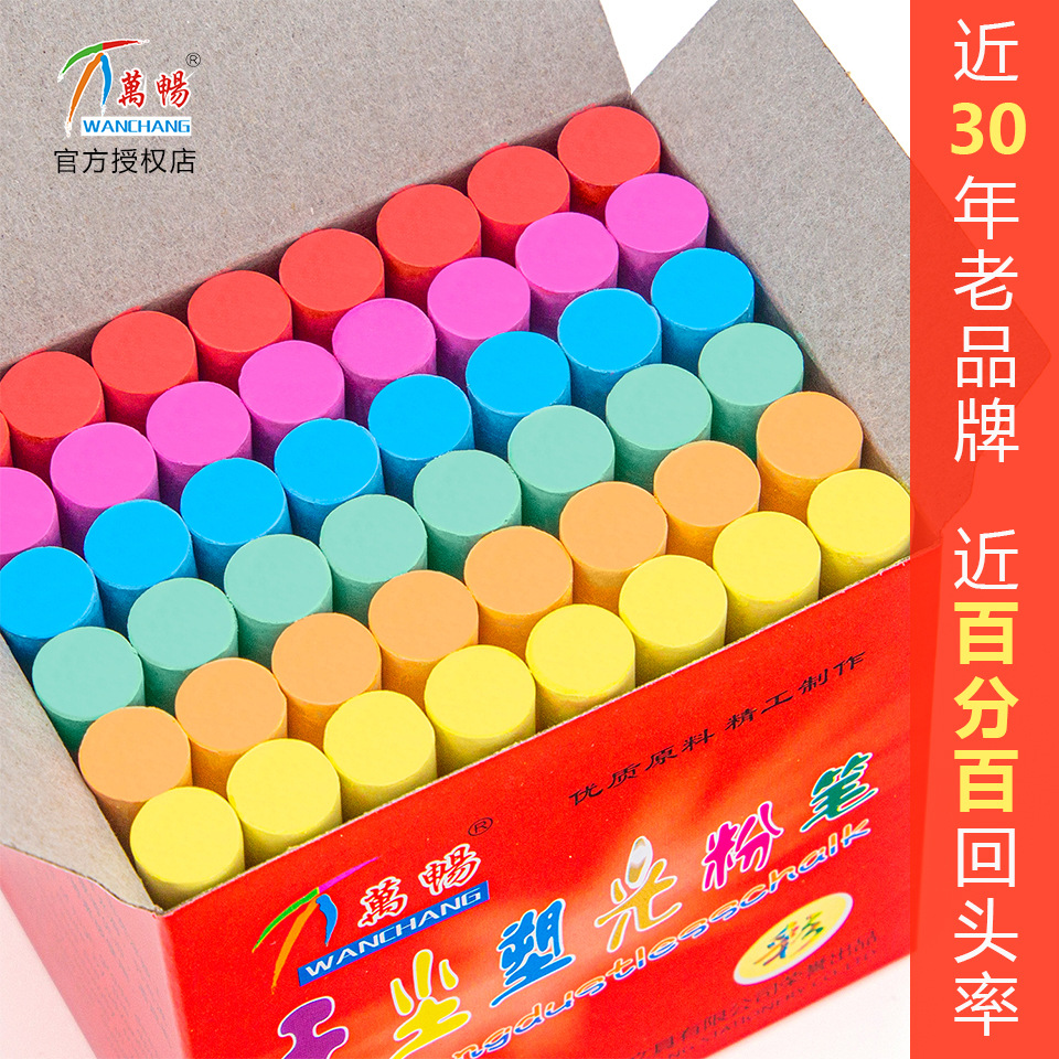 25年老品牌万畅塑光粉笔教师儿童白色彩红色盒黑板擦批发