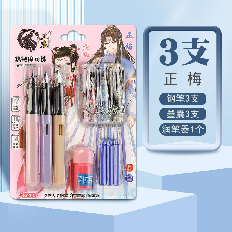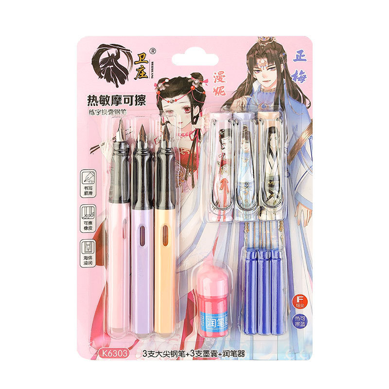 卫庄热敏可擦钢笔动漫卡通套装男女孩小学生书写练字钢笔套装批发
