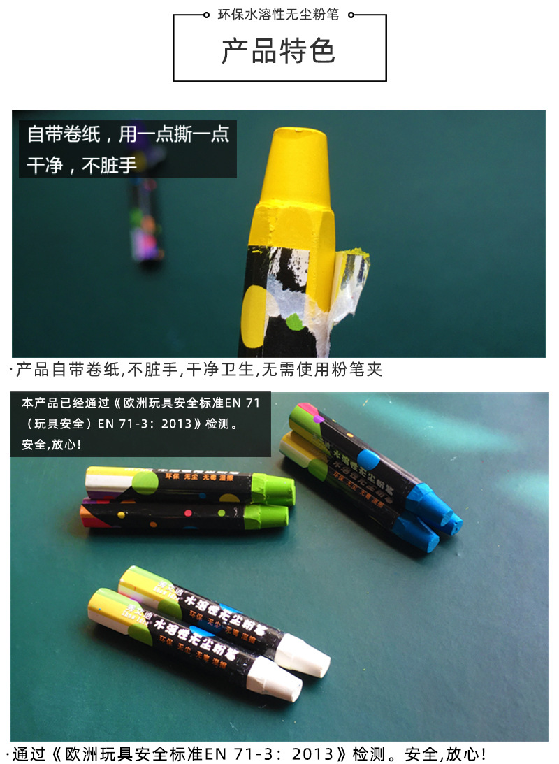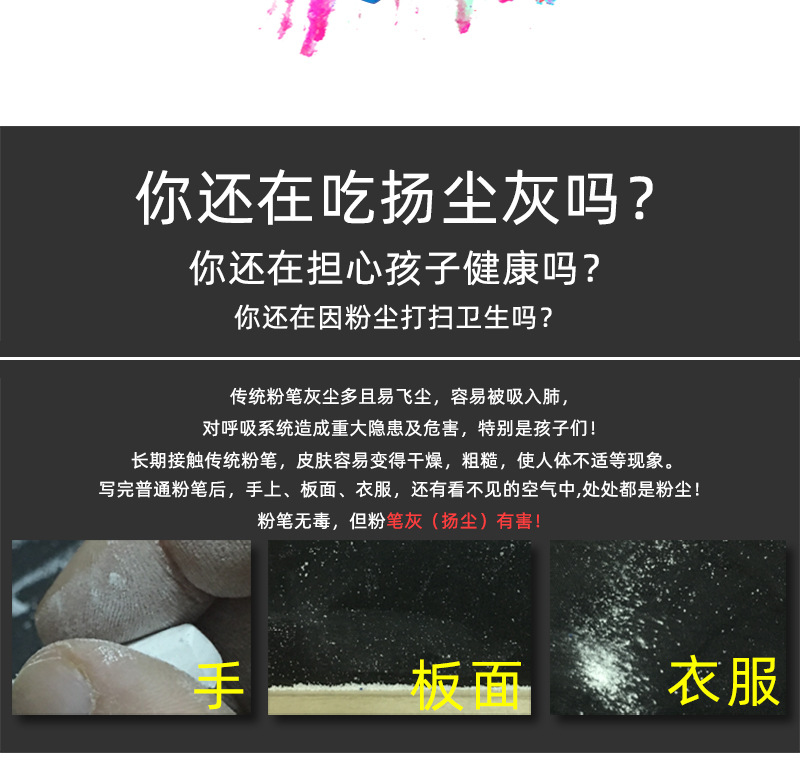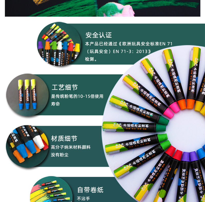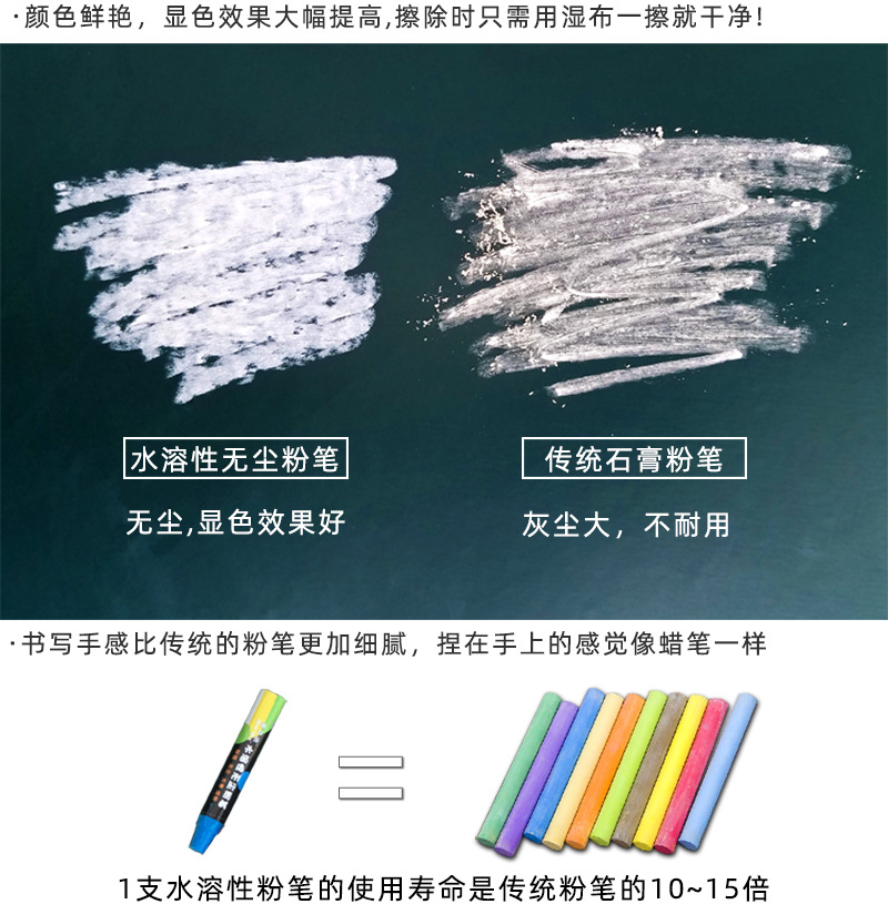 水溶性无尘粉笔家用儿童涂鸦黑板报教师教学彩色易擦写免粉笔套