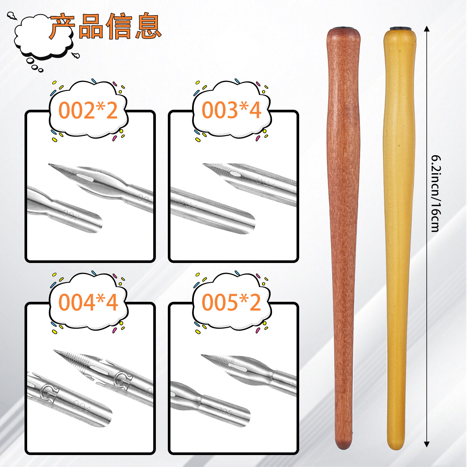 复古实木杆蘸水笔艺术英文书法钢笔漫画笔套装可换笔尖木杆蘸水钢
