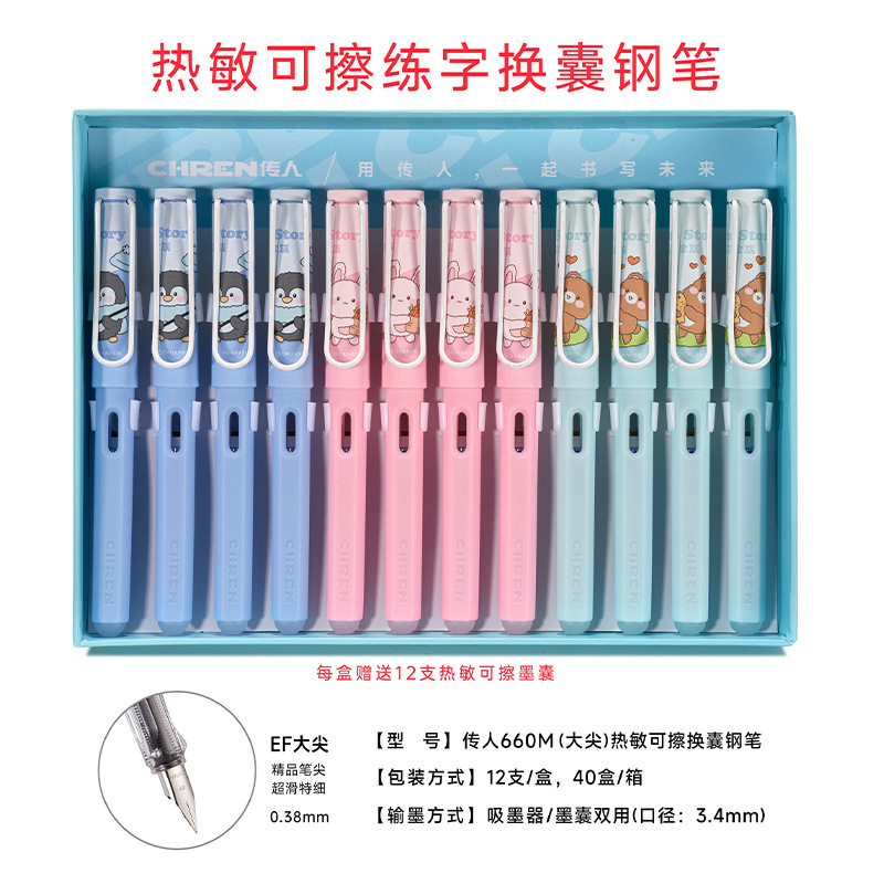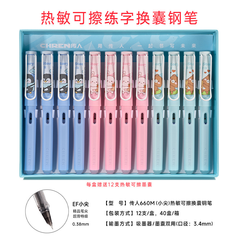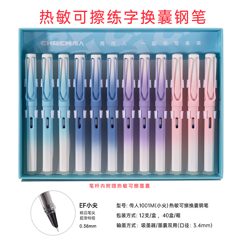 传人新款莫兰迪渐变高颜值正姿练字小学生三年级热敏可擦钢笔