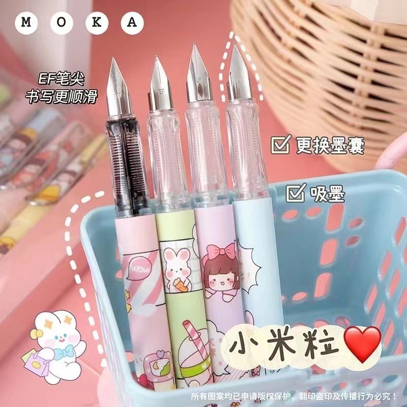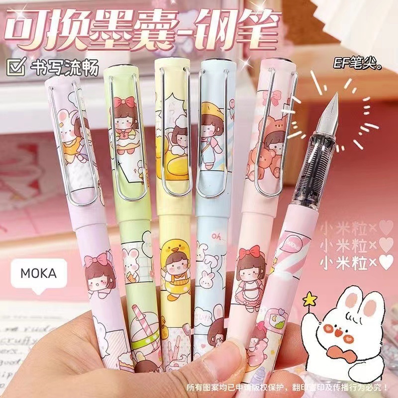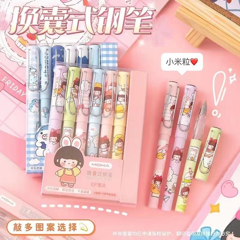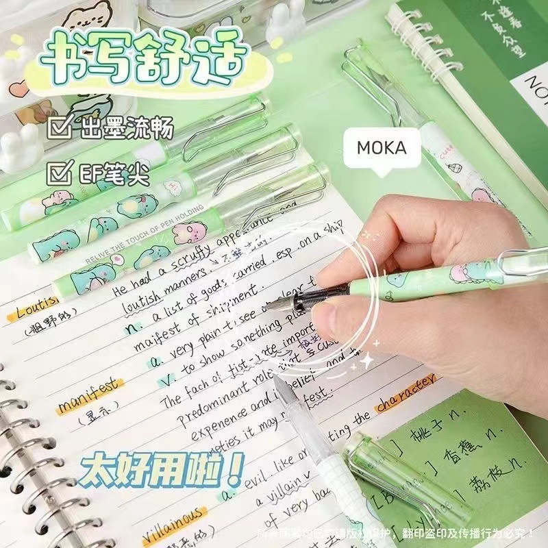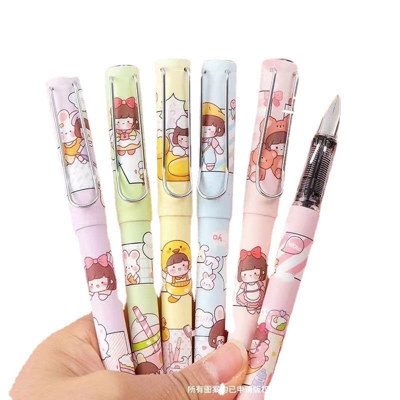 钢笔套装卡通速干钢笔小学生男女蓝色钢笔可换墨囊书写流畅不断墨