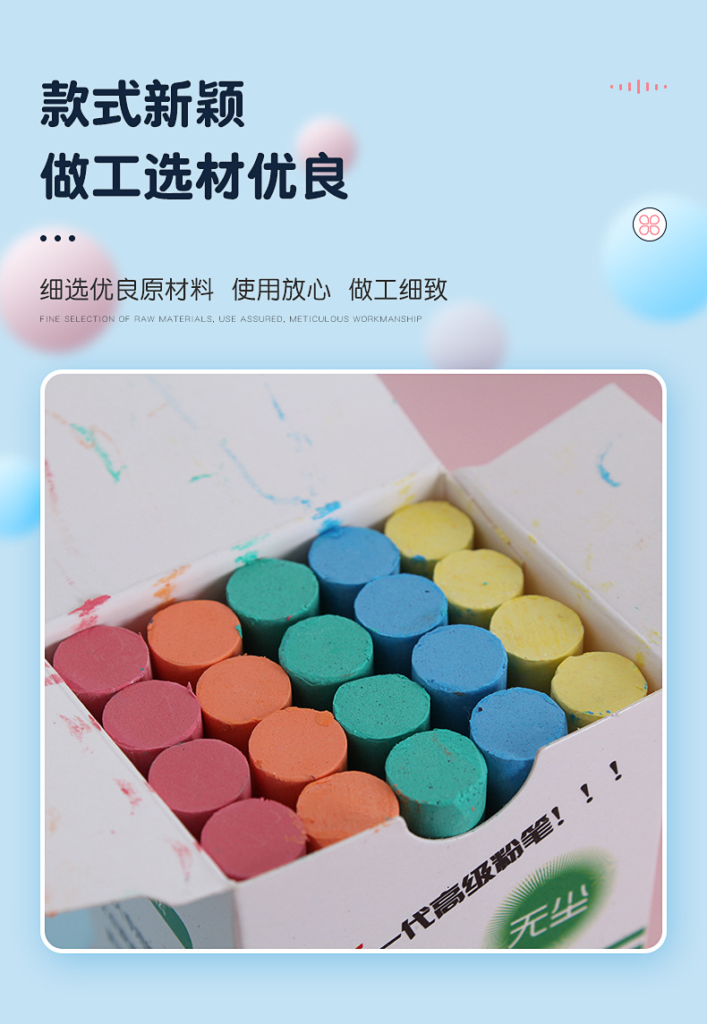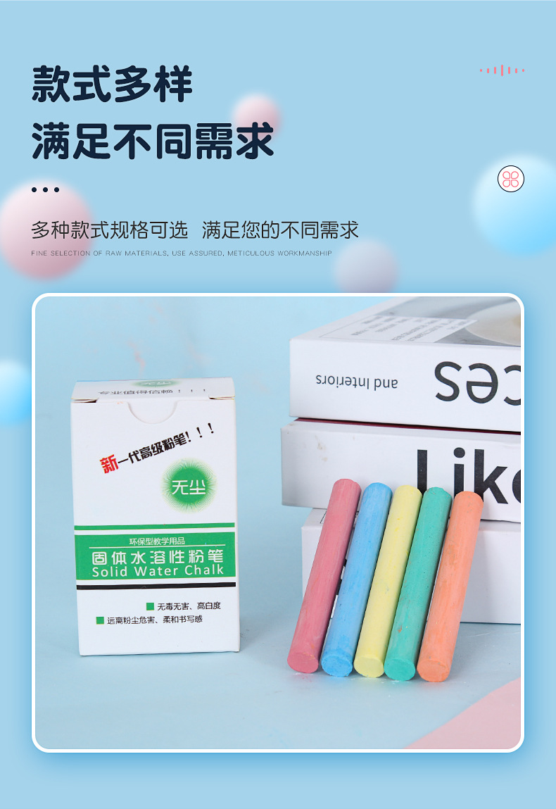 教师书写工具水溶性粉笔一盒20支白色彩色无尘粉笔办公教学用具
