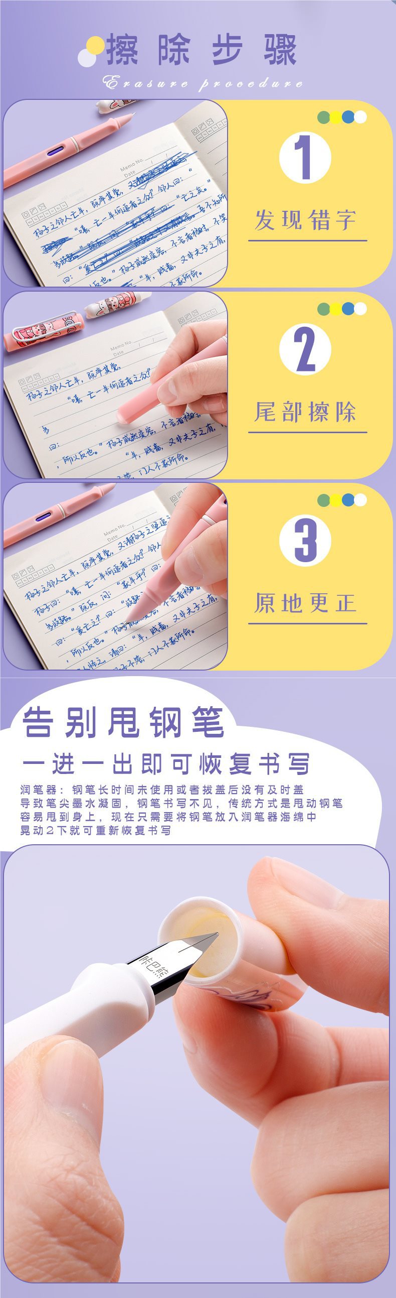 热敏可擦钢笔套装0.38女孩可爱卡通带橡皮初中生可替换墨囊