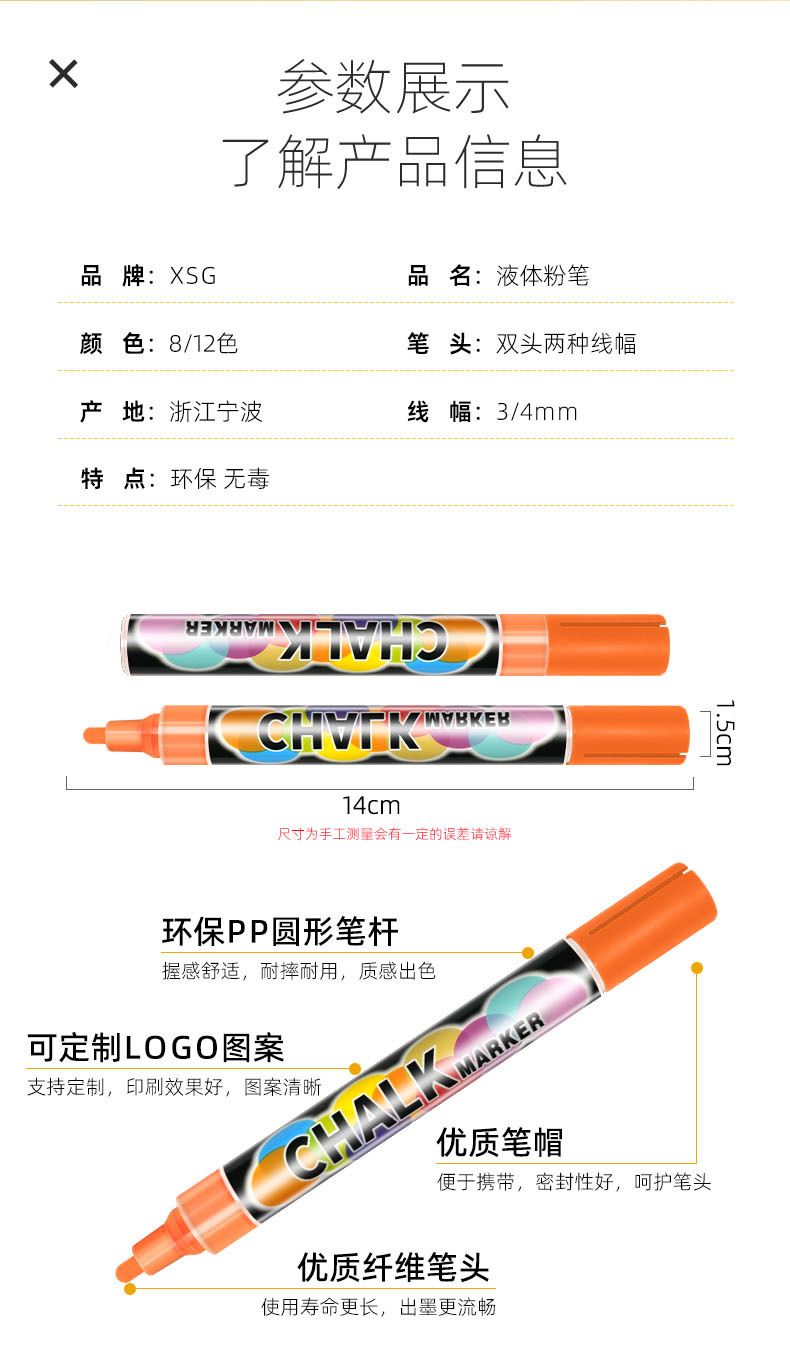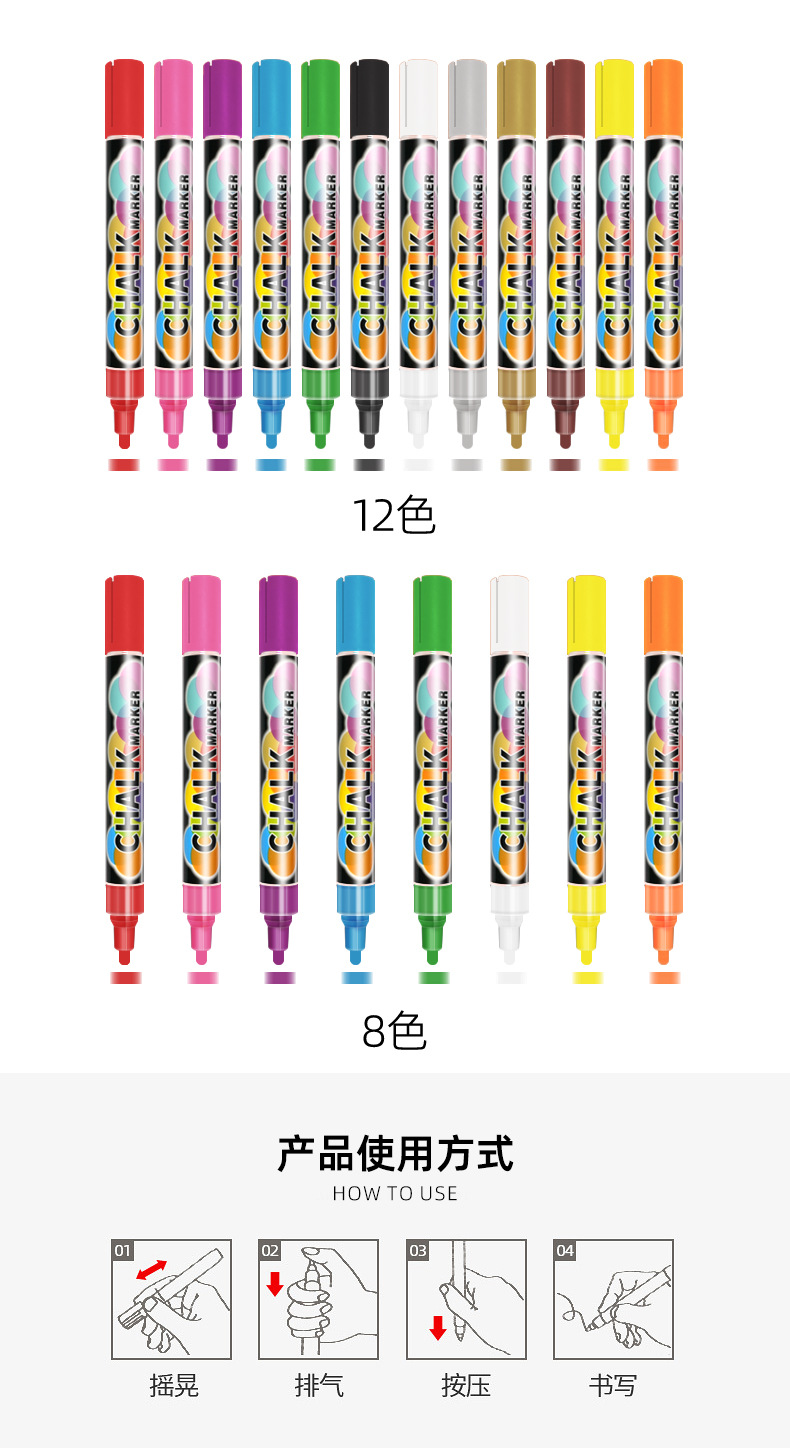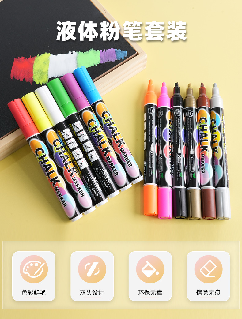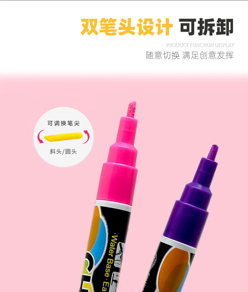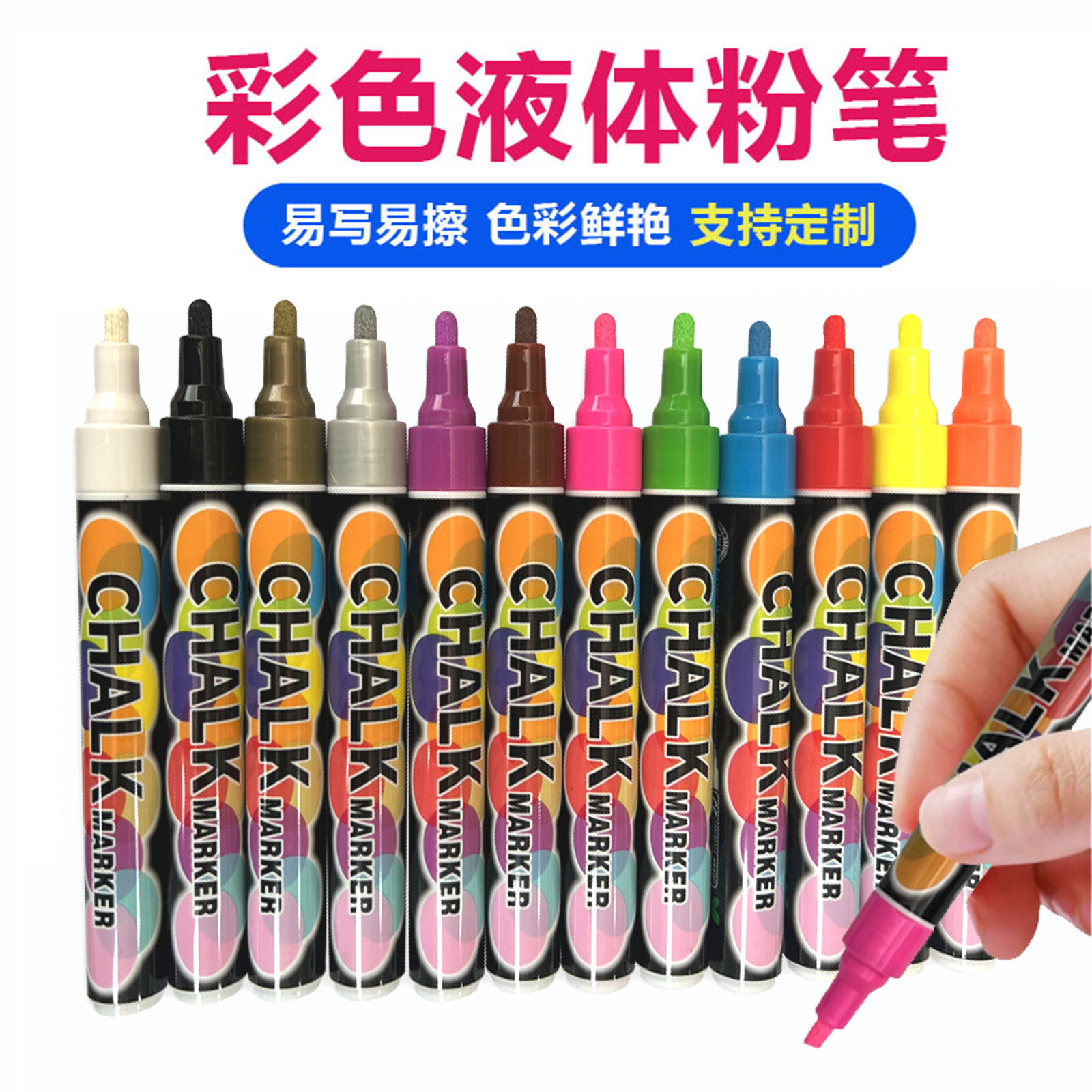 12色液体粉笔3mm水溶性无尘笔儿童涂鸦可擦黑板荧光板笔批发