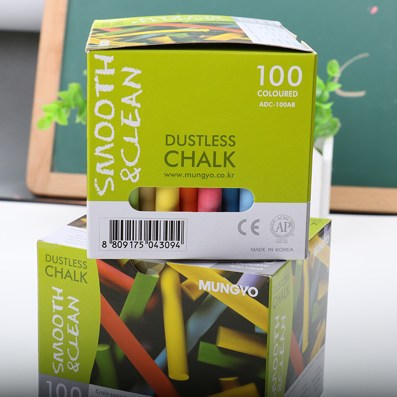 韩国盟友MUNGYO无尘彩色粉笔100支装无尘白色10支粉笔儿童粉笔