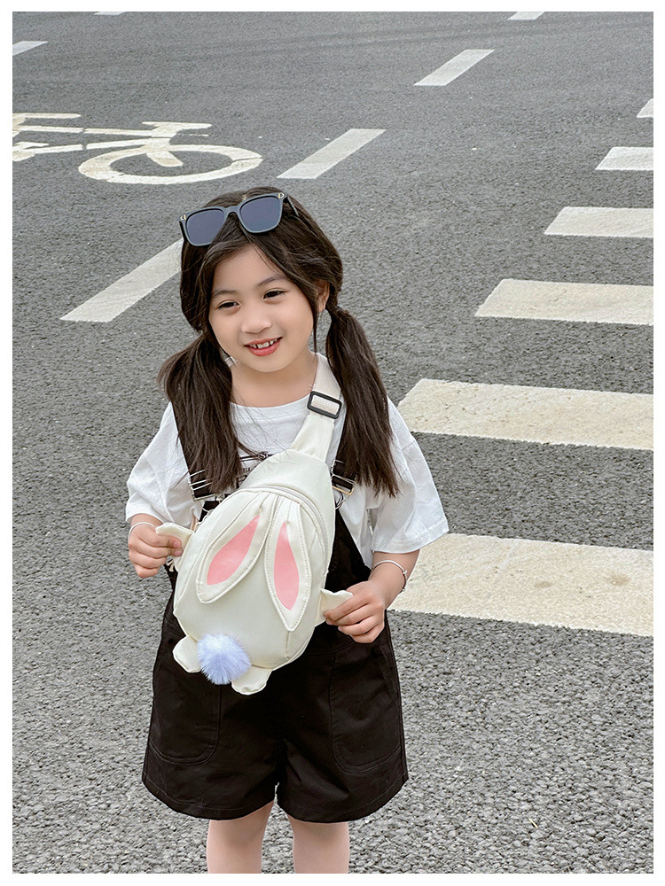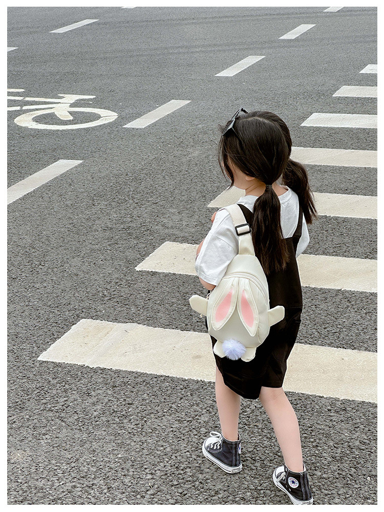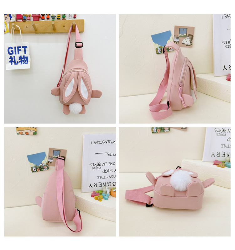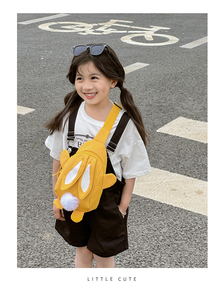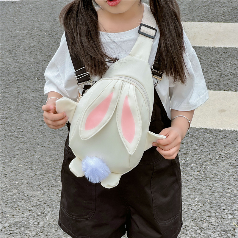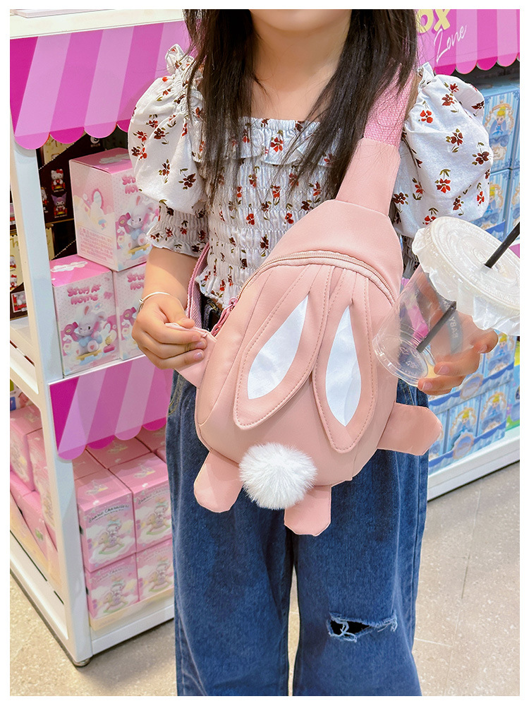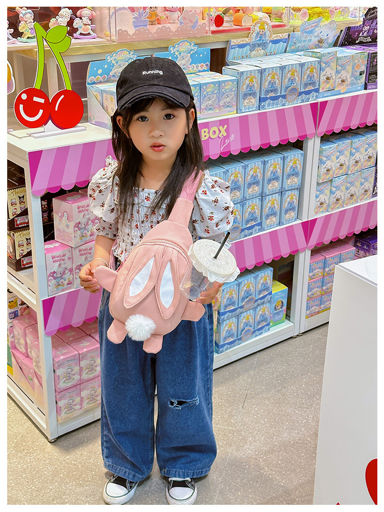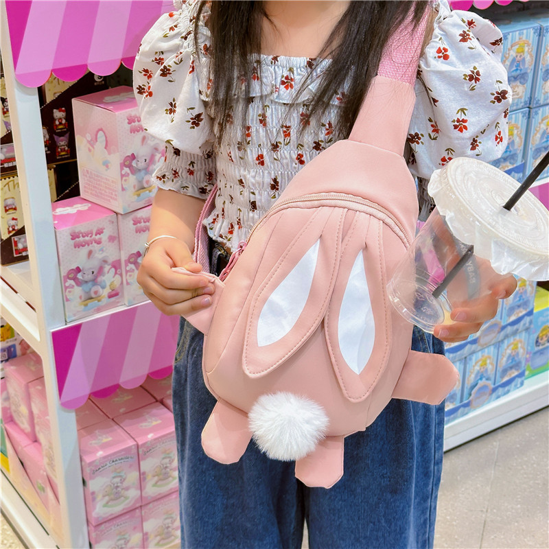 儿童小兔胸包洋气女孩出游斜挎包可爱卡通幼儿园帆布包上课水杯袋