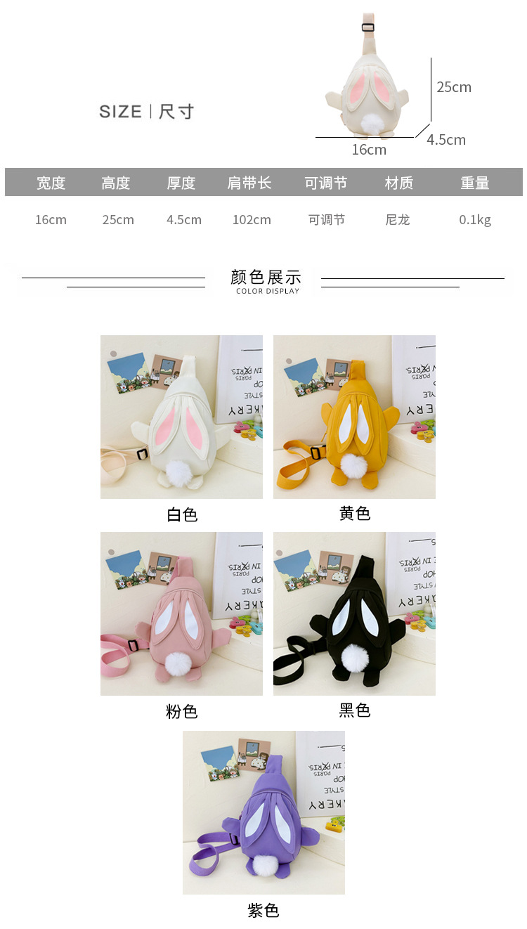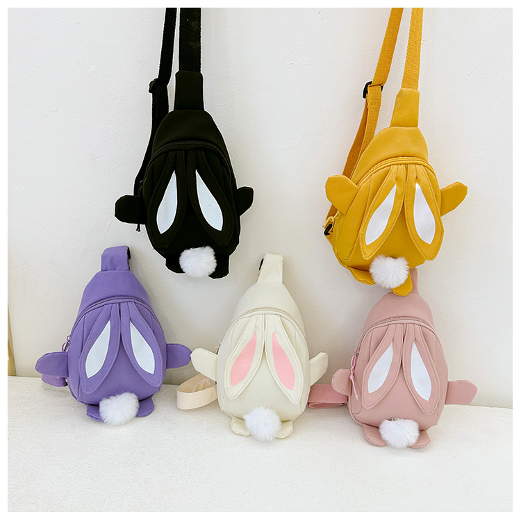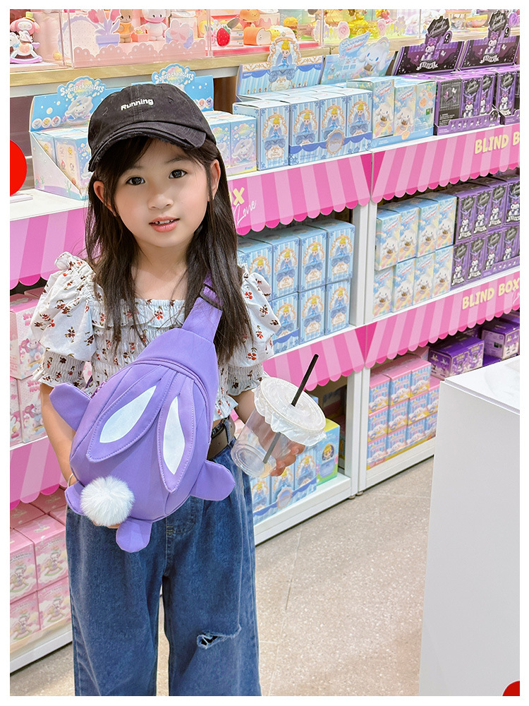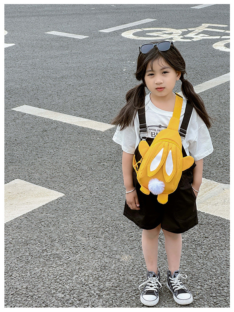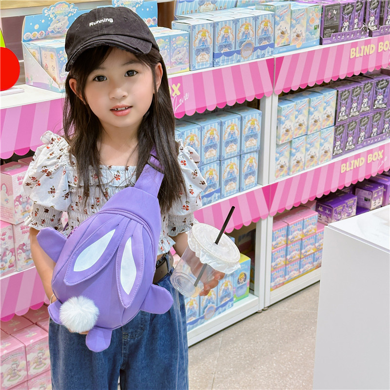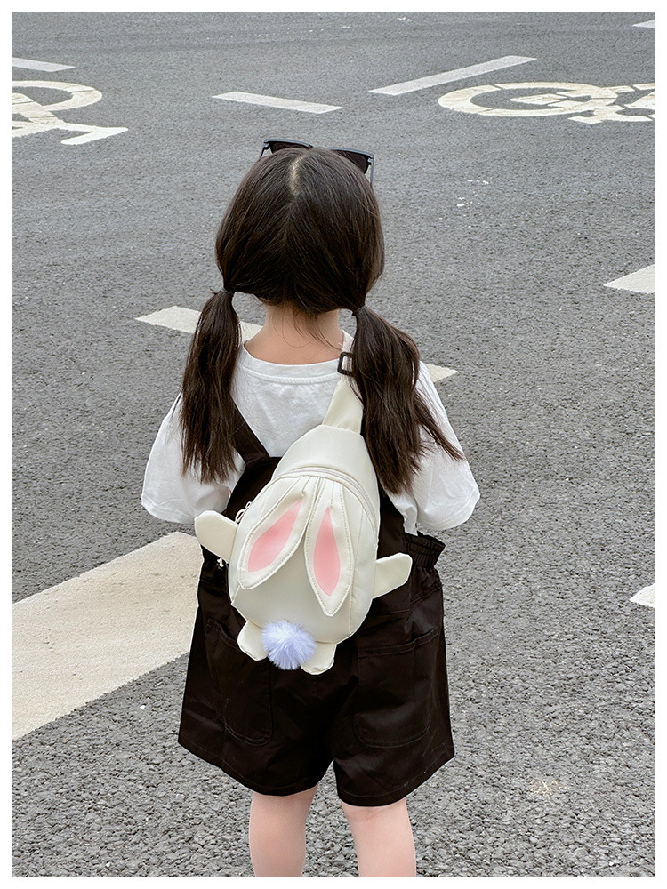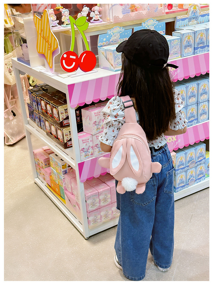 儿童小兔胸包洋气女孩出游斜挎包可爱卡通幼儿园帆布包上课水杯袋