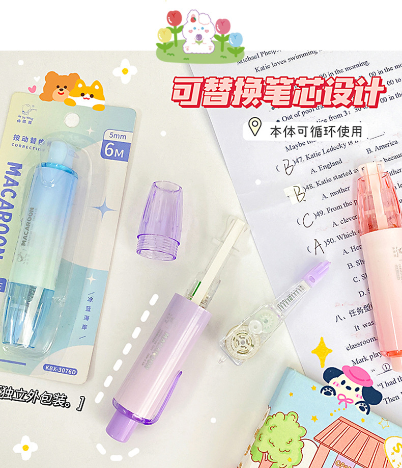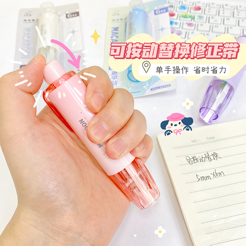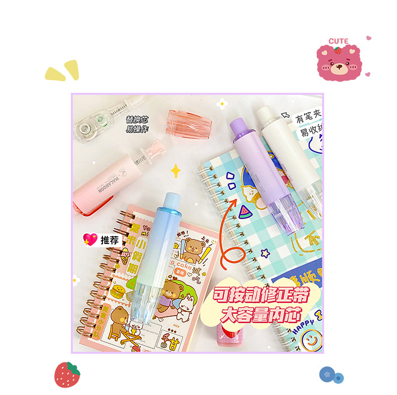 ins可爱卡通按动修正带蓝色可替换学生儿童便携涂改带文具批发