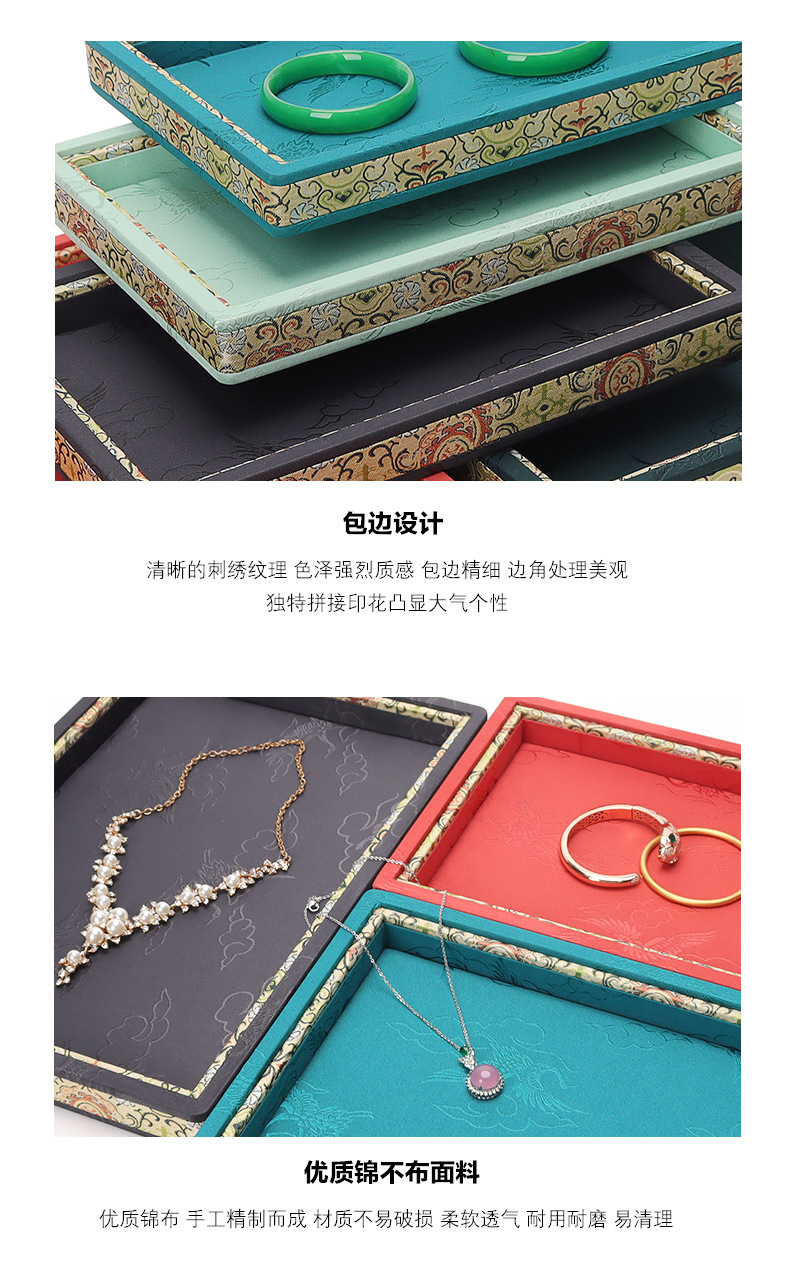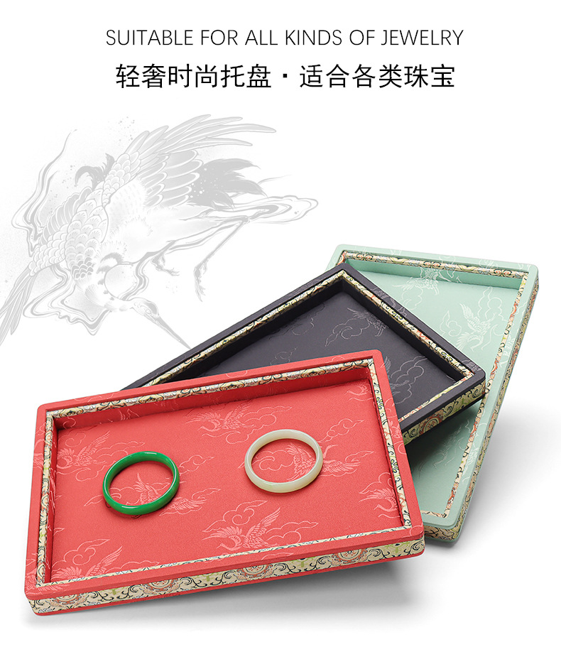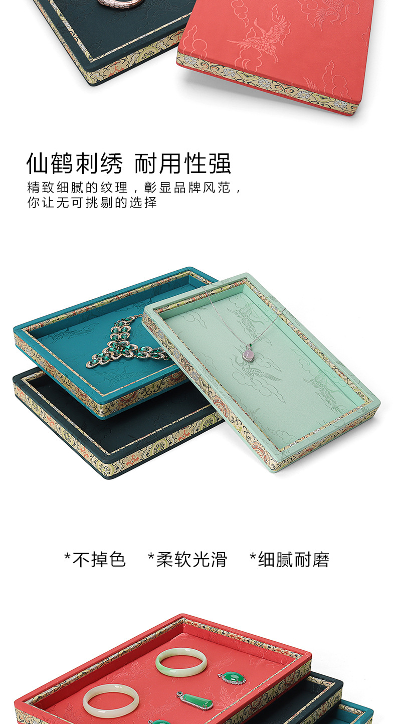 珠宝复古手镯玉器饰品看货盘文玩仙鹤刺绣展示盘手串首饰道具托盘